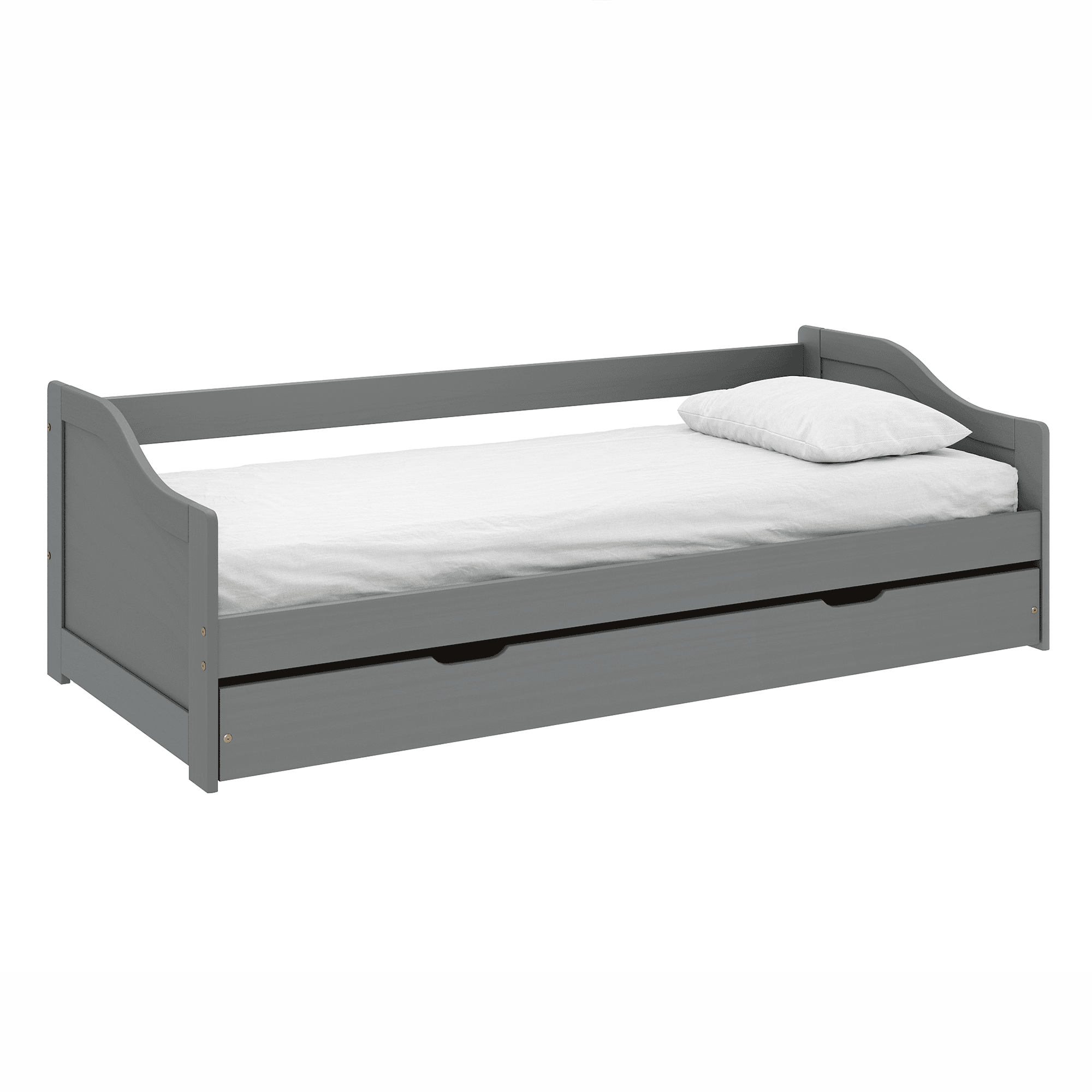 Pat cu pat suplimentar extensibil, gri, lemn masiv, 90×200, LAURA NEW