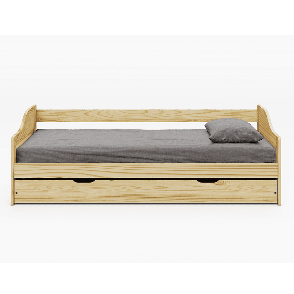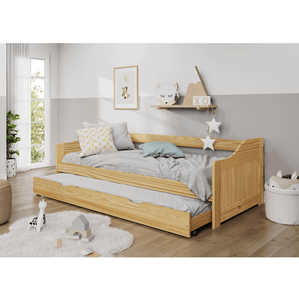 Pat cu pat suplimentar extensibil, natural, din lemn masiv, 90×200, LAURA NEW