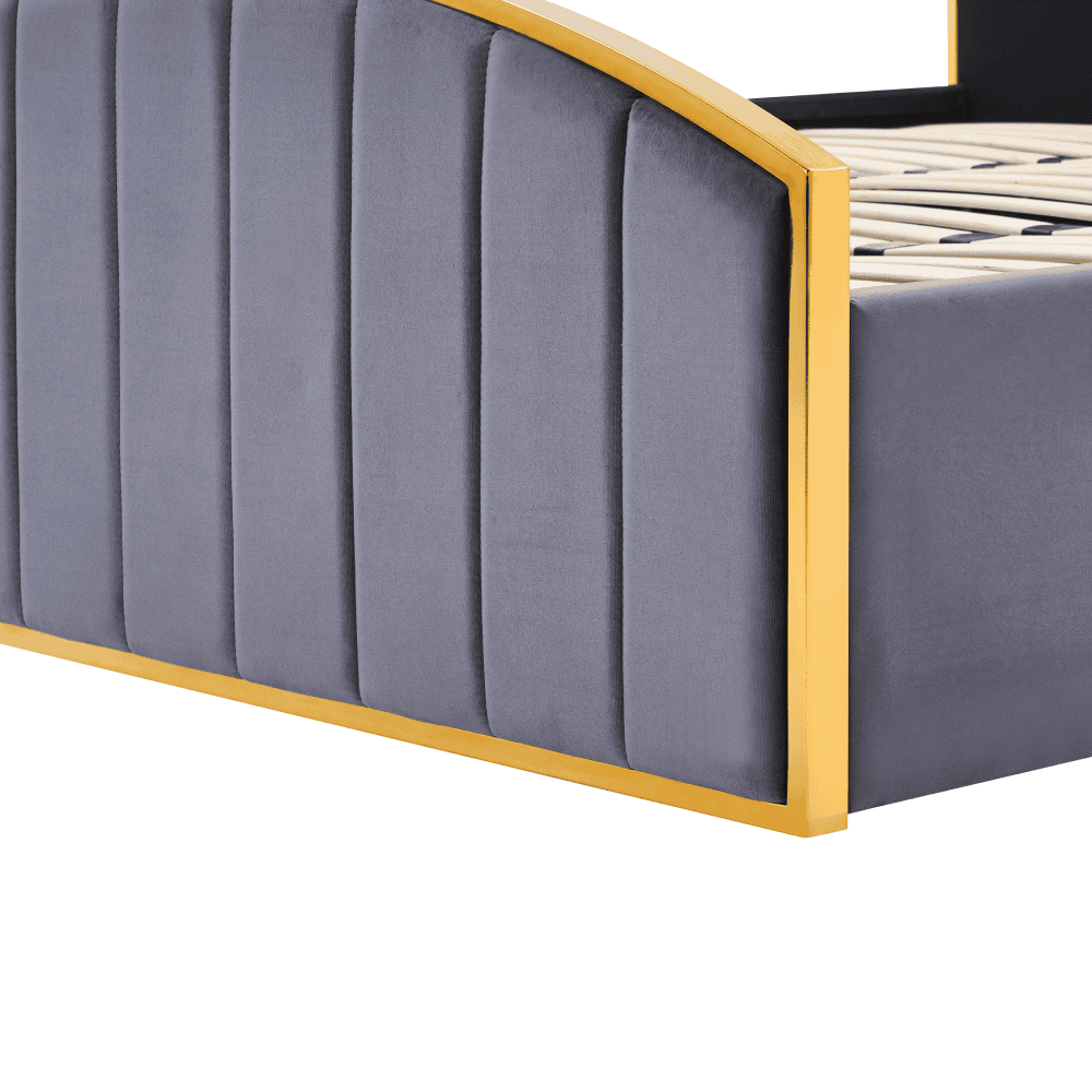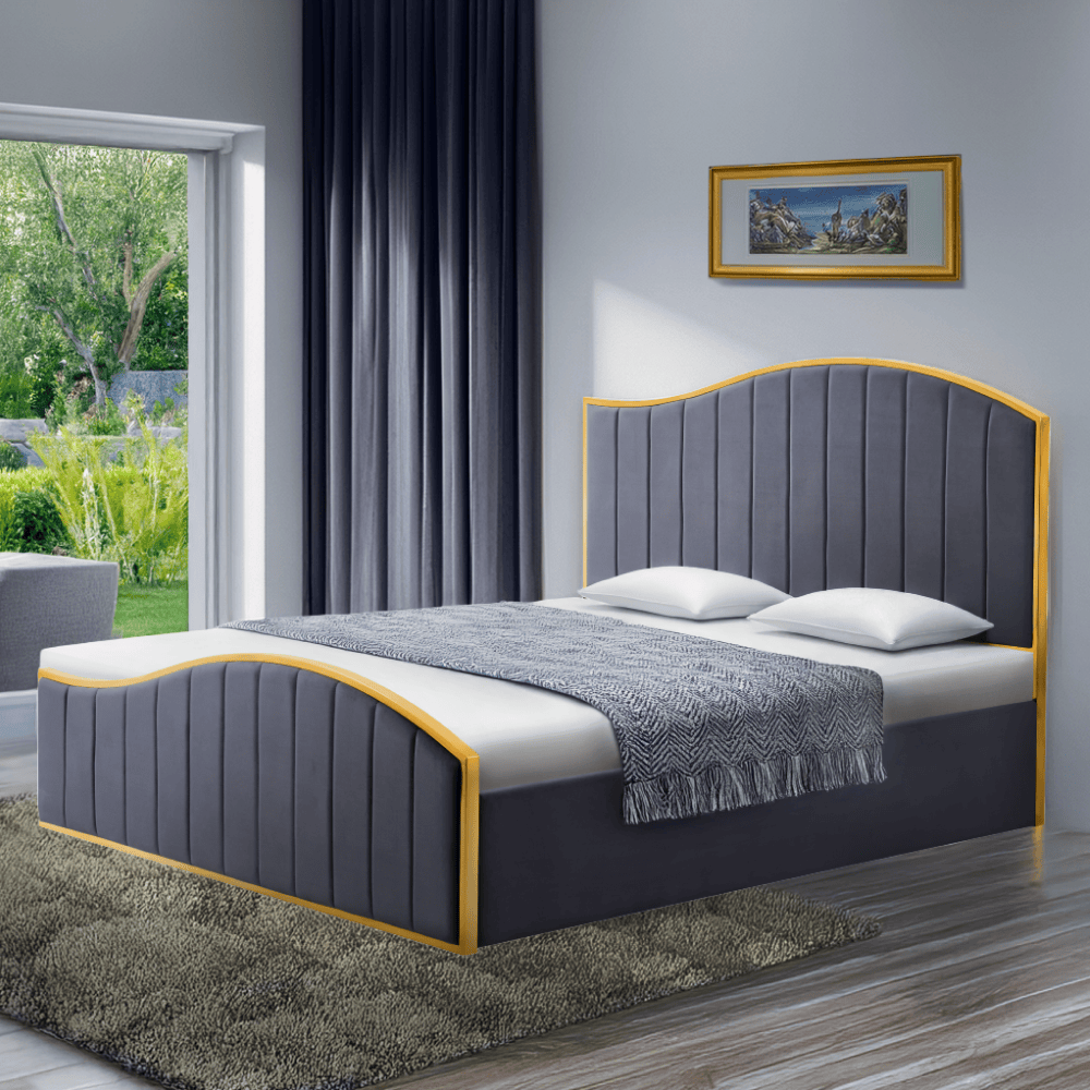 Pat cu somieră, 160×200, gri închis ţesătură Velvet/gold crom auriu, GEORGIA