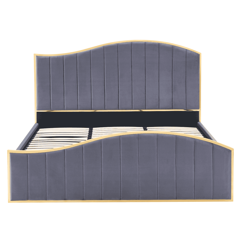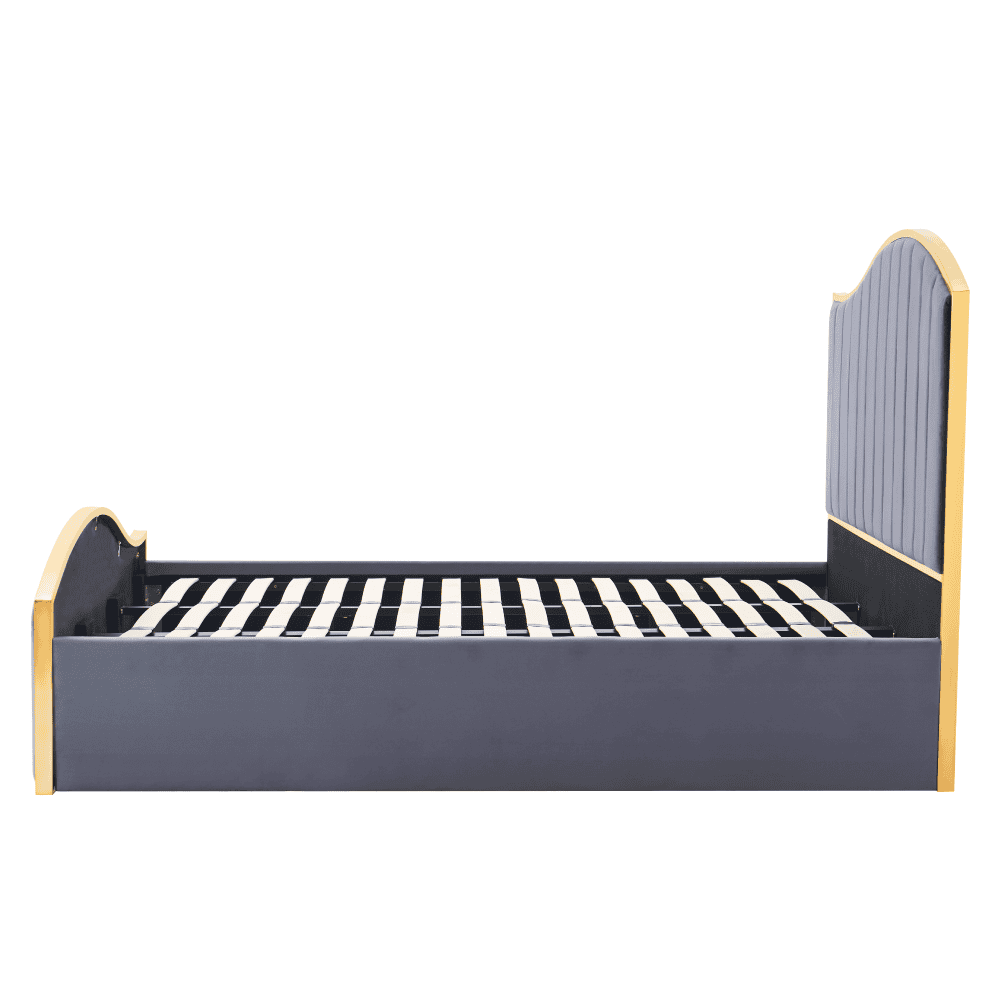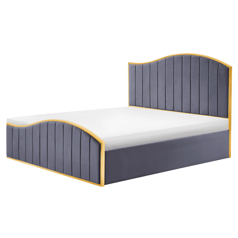 Pat cu somieră, 180×200, gri închis ţesătură Velvet/gold crom auriu, GEORGIA