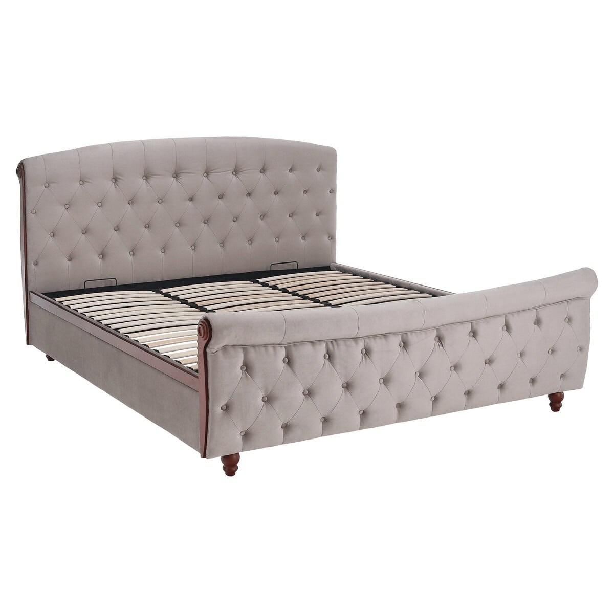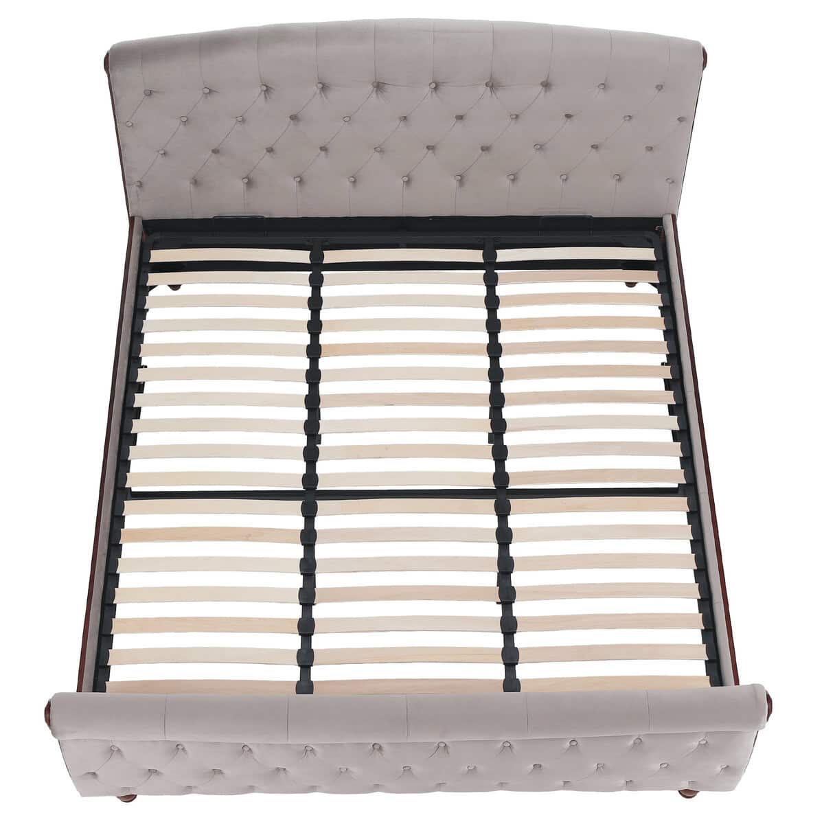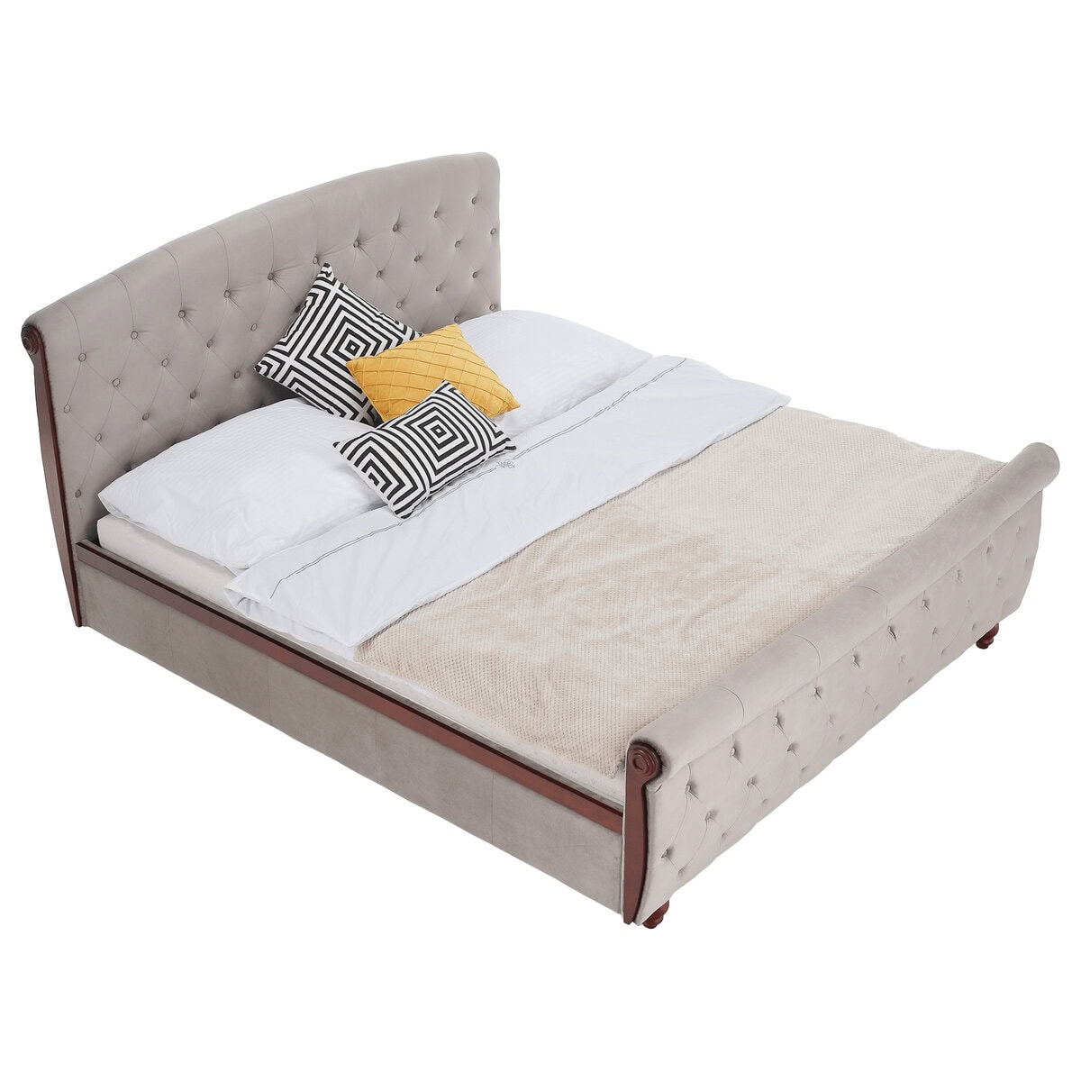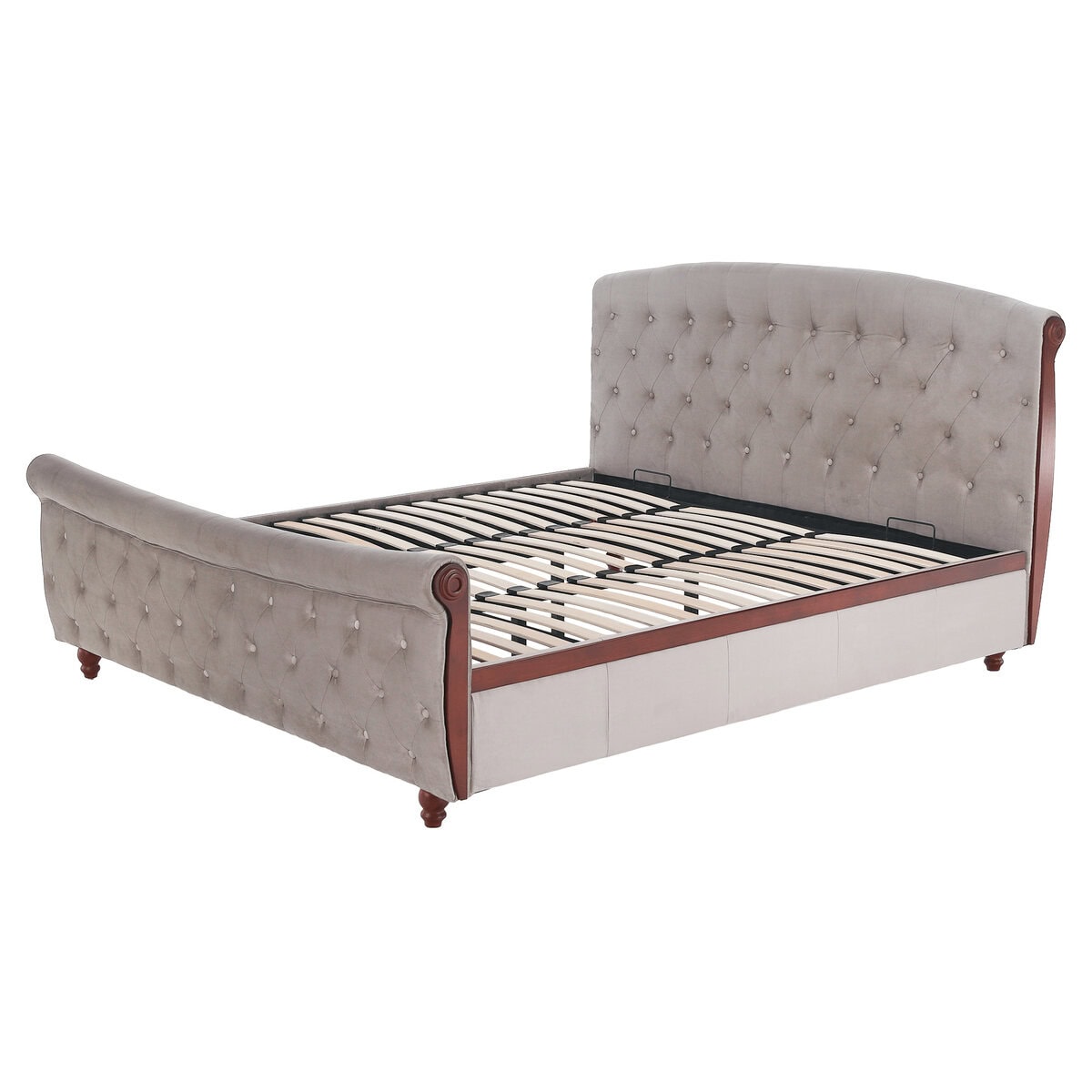 Pat cu somieră, 180×200, gri-maroniu, ţesătură Taupe Velvet, BARETO