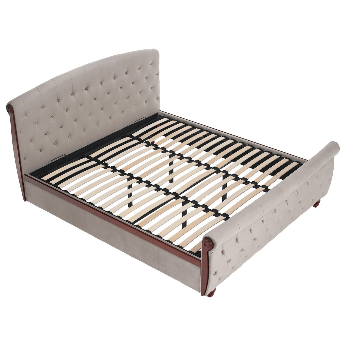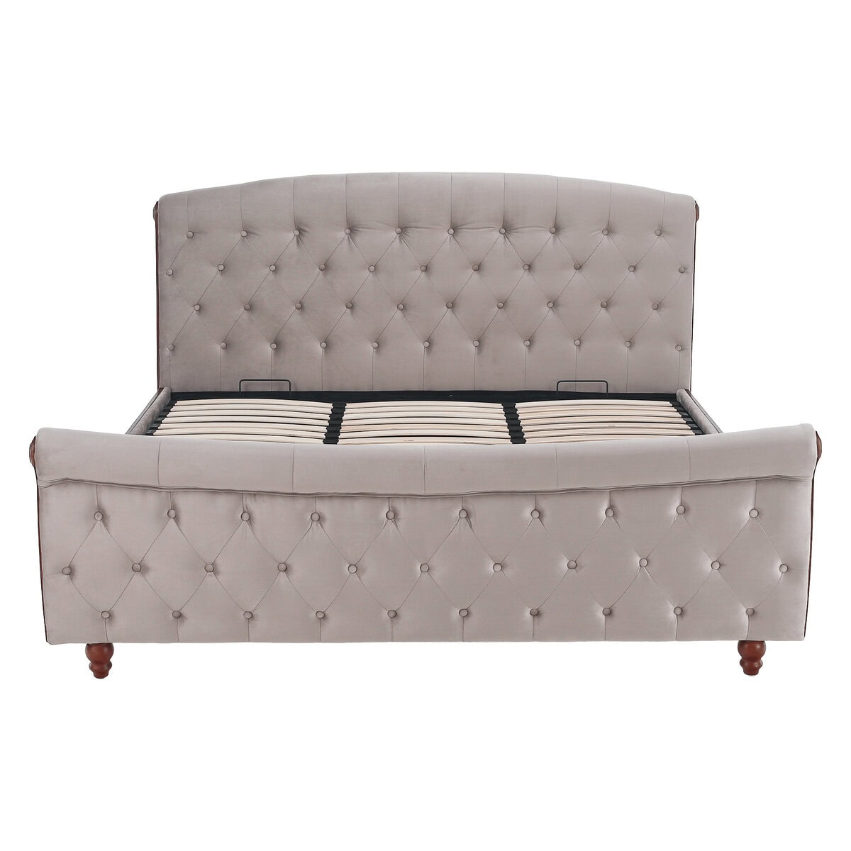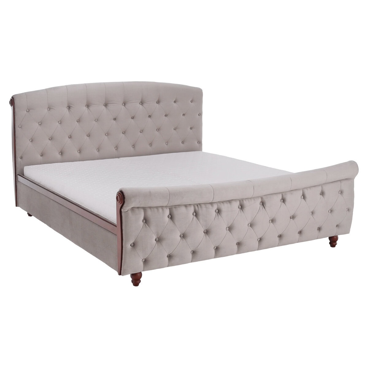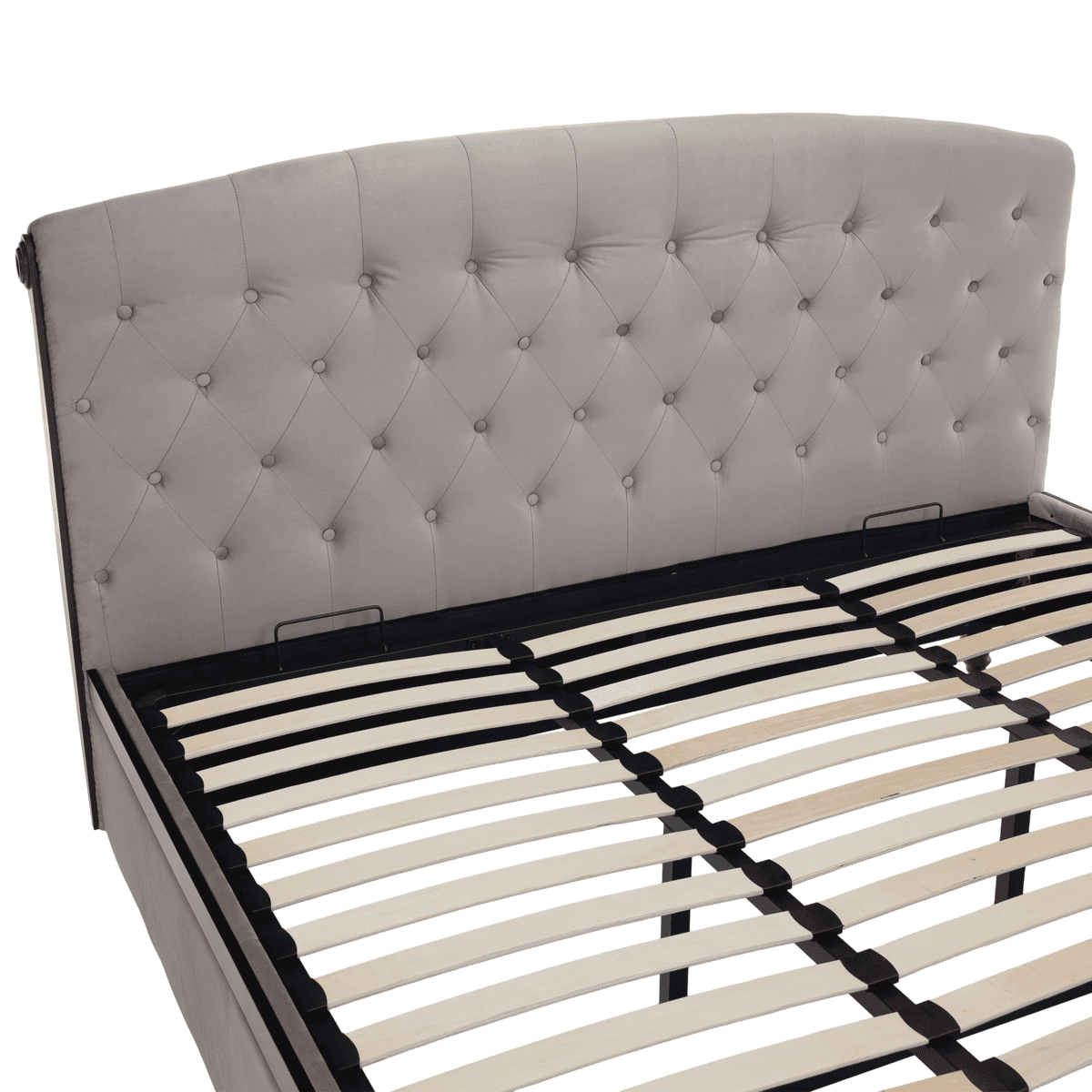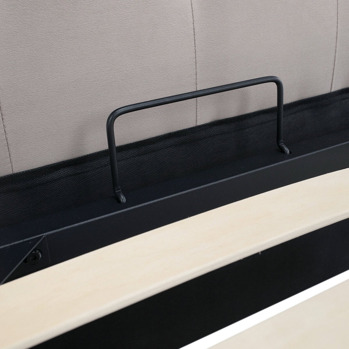 Pat cu somieră, 180×200, gri-maroniu, ţesătură Taupe Velvet, BARETO