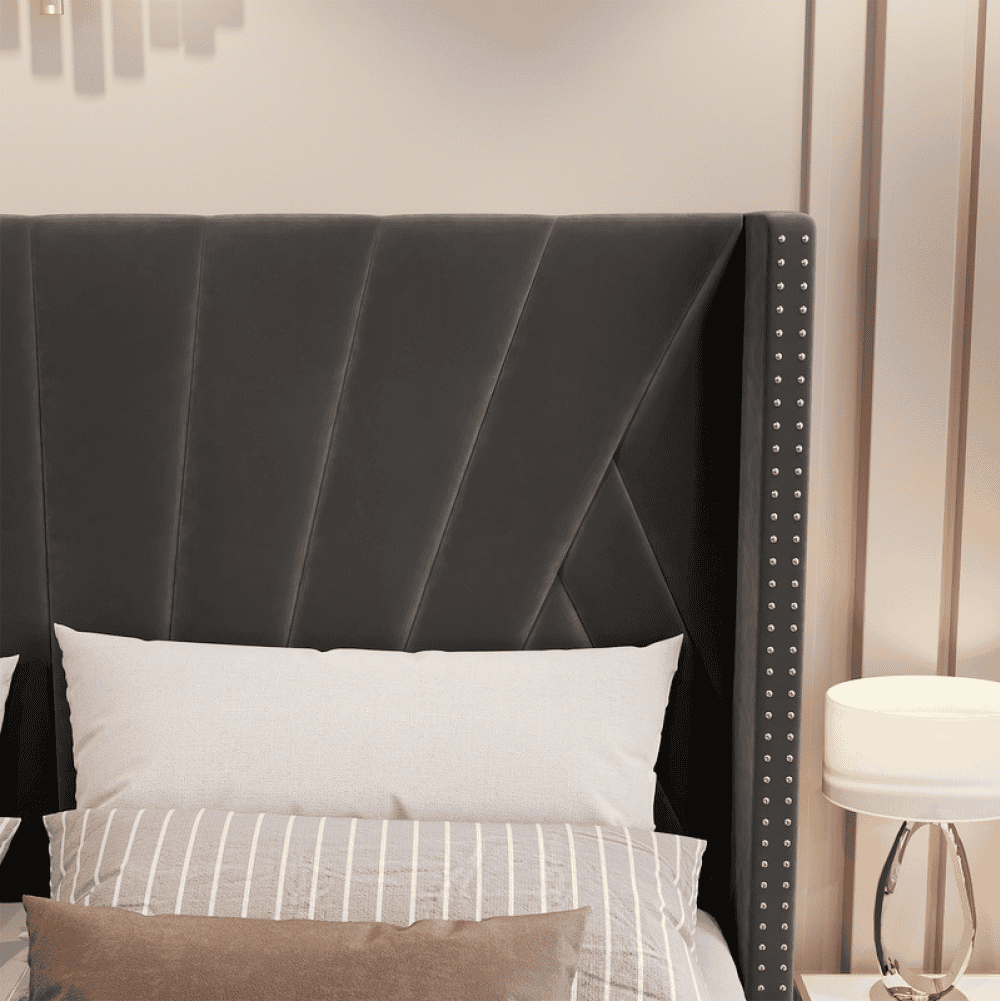 Pat cu somieră, 180×200, ţesătură gri închis Velvet, PENELOPE