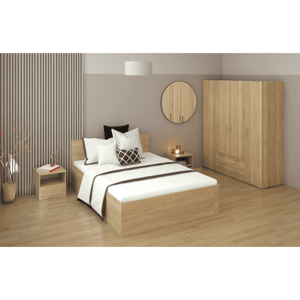 Material: DTD laminat Culoare: stejar sonoma Dimensiuni (Lxlxh): 143,6×203,2×78,7 cm Dimensiuni zonă de dormit (Lxl): 140×200 cm Grosime DTD laminat: 1,6 cm Înălţimea până la somieră: 24,1 cm Înălţimea lateralei: 39,9 cm Înălţimea minimă recomandată a saltelei: 10 cm Single Cu spaţiu de depozitare Înălţimea patului deschis: 141 cm Portanţă pe persoană: 90 kg Livrat cu somieră metalic Somiera este livrată asamblată Livrat fără saltea Opţiune de a cumpăra o saltea din oferta noastră Design modern Produs slovac de calitate Livrat dezasamblat