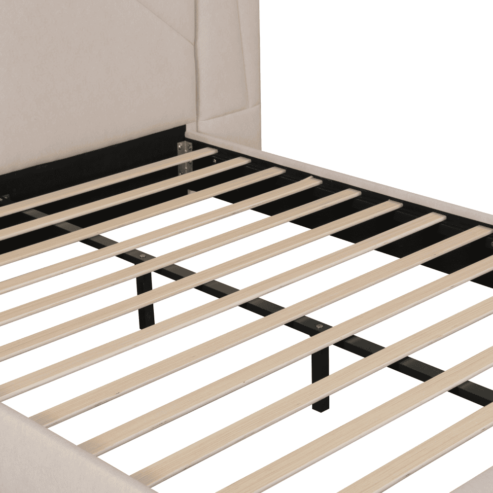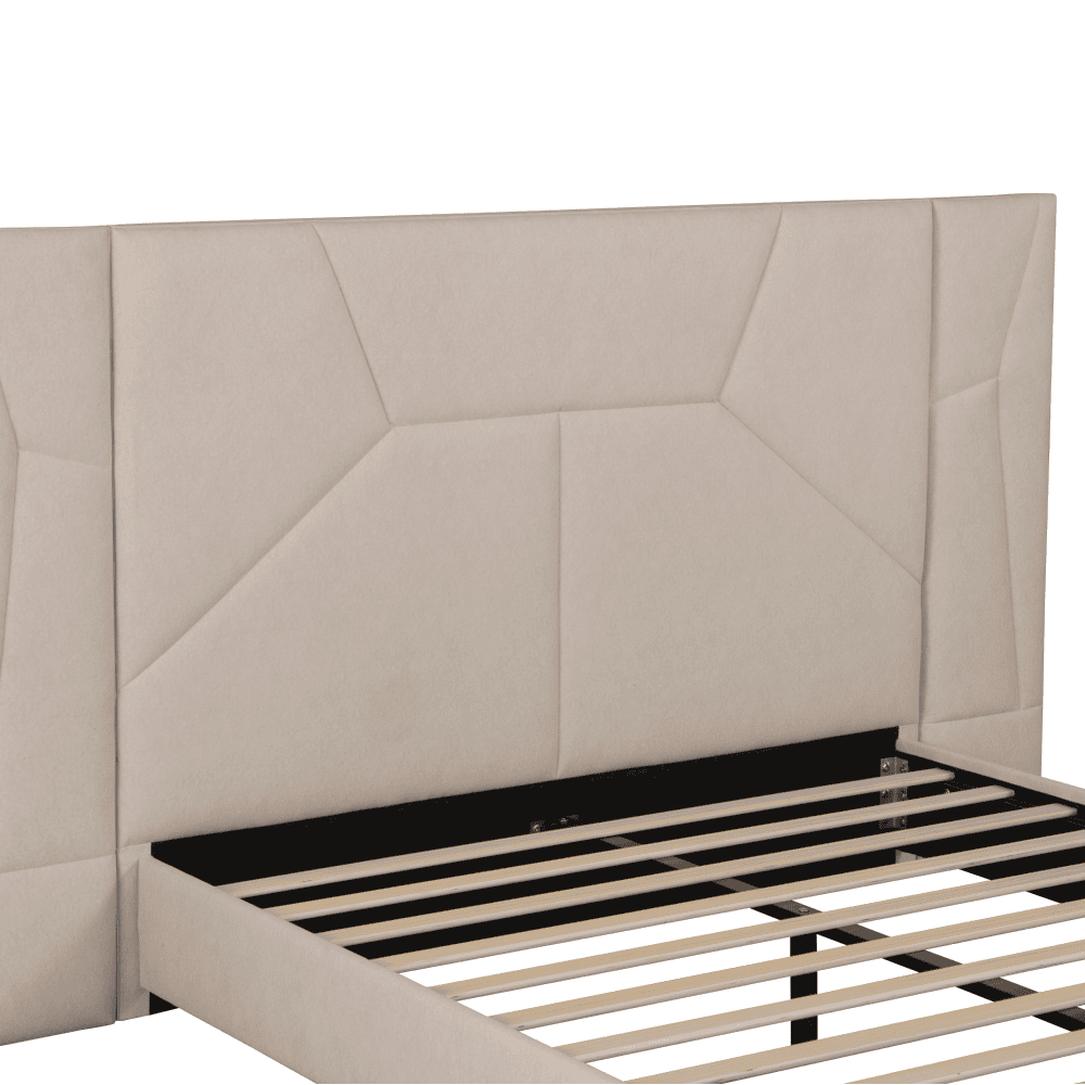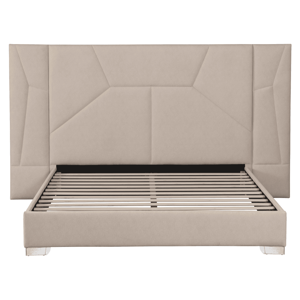 Pat cu somieră şi iluminare LED, 160×200, ţesătură Velvet bej, ALTESA