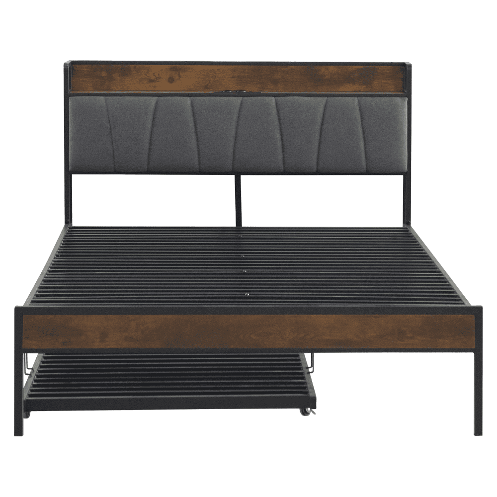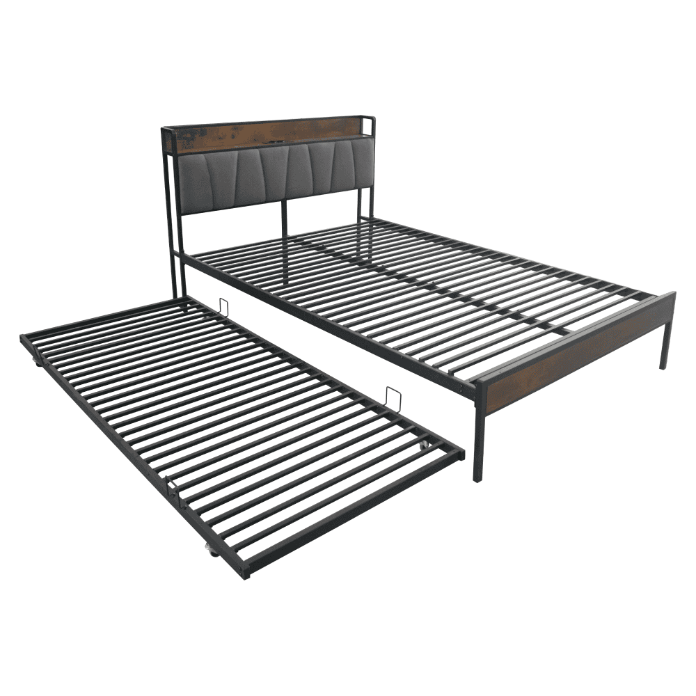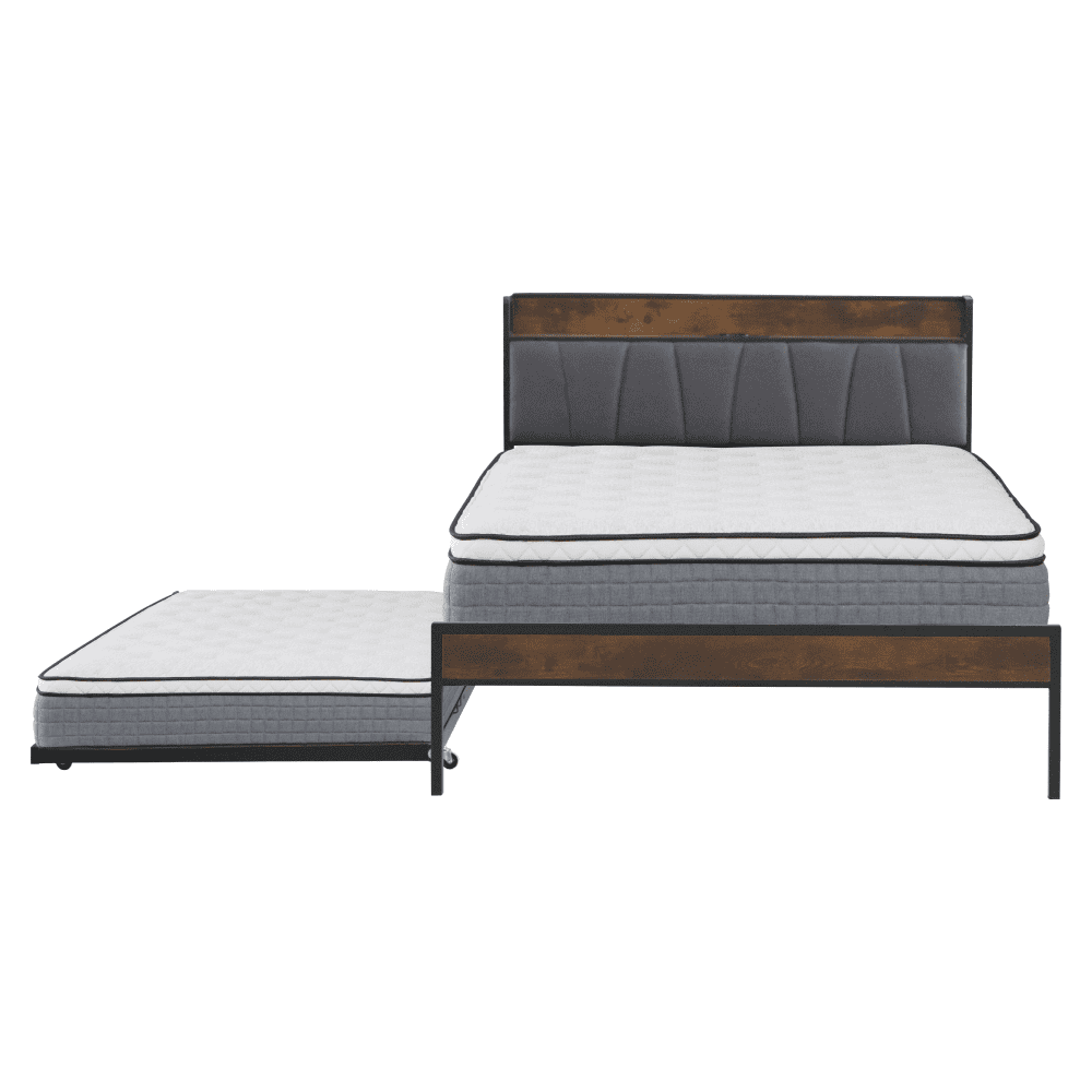 Pat cu somieră şi pat suplimentar extensibil, 160×200, negru/gri, NORDO