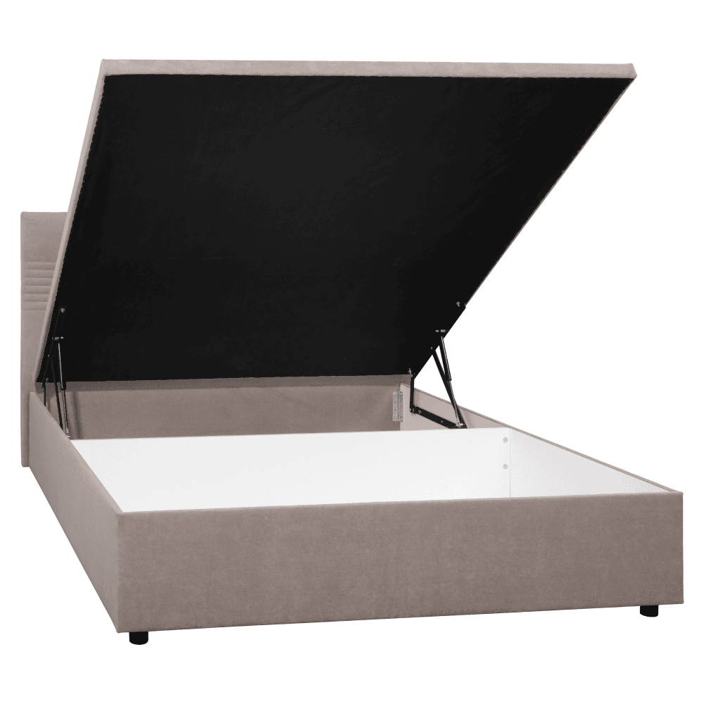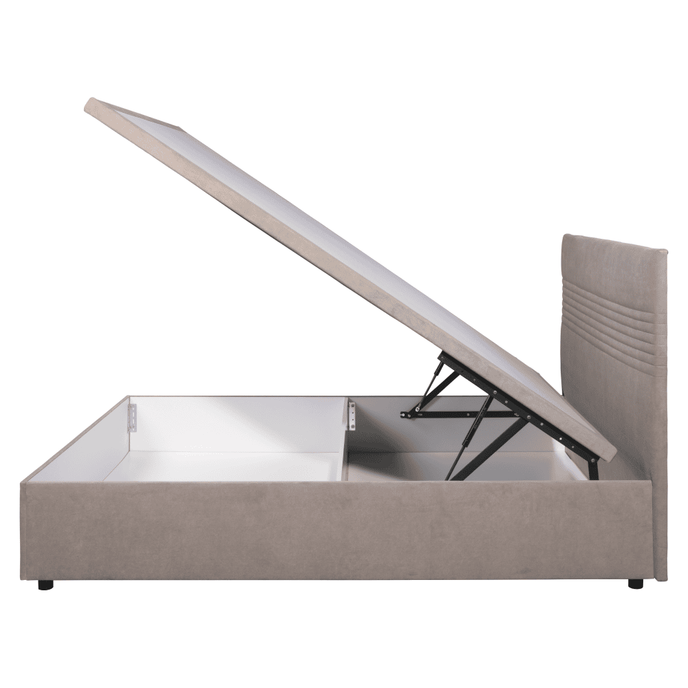 Material: ţesătură Mono 233 Rezistenţa ţesăturii la frecare conform testului Martindale: 100 000 de cicluri de frecare Culoare: bej Dimensiuni (lxAxh): 167x208x110,5 cm Suprafaţa pentru dormit (lxL): 160×200 cm Portanţă pe persoană: 100 kg Picioare din metal Înălţimea compartimentului inferior faţă de podea: 5 cm Livrat cu somieră Somieră cu balamale pe gaz Spaţiu de depozitare Portanţă spaţiu de depozitare: 30 kg Spaţiul de depozitare trebuie încărcat uniform Livrat fără saltea Posibilitatea de a achiziţiona o saltea din oferta noastră Înălţimea minimă recomandată a saltelei: 6 cm Frontală cu cusături decorative Material impermeabil Design modern Livrat dezasamblat