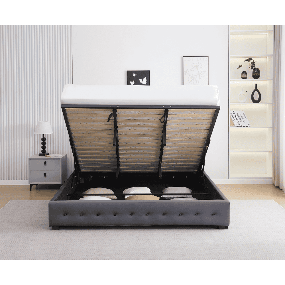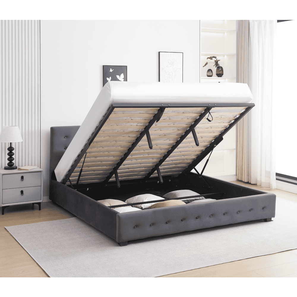 Pat cu spaţiu de depozitare, 180×200, gri, MINDY