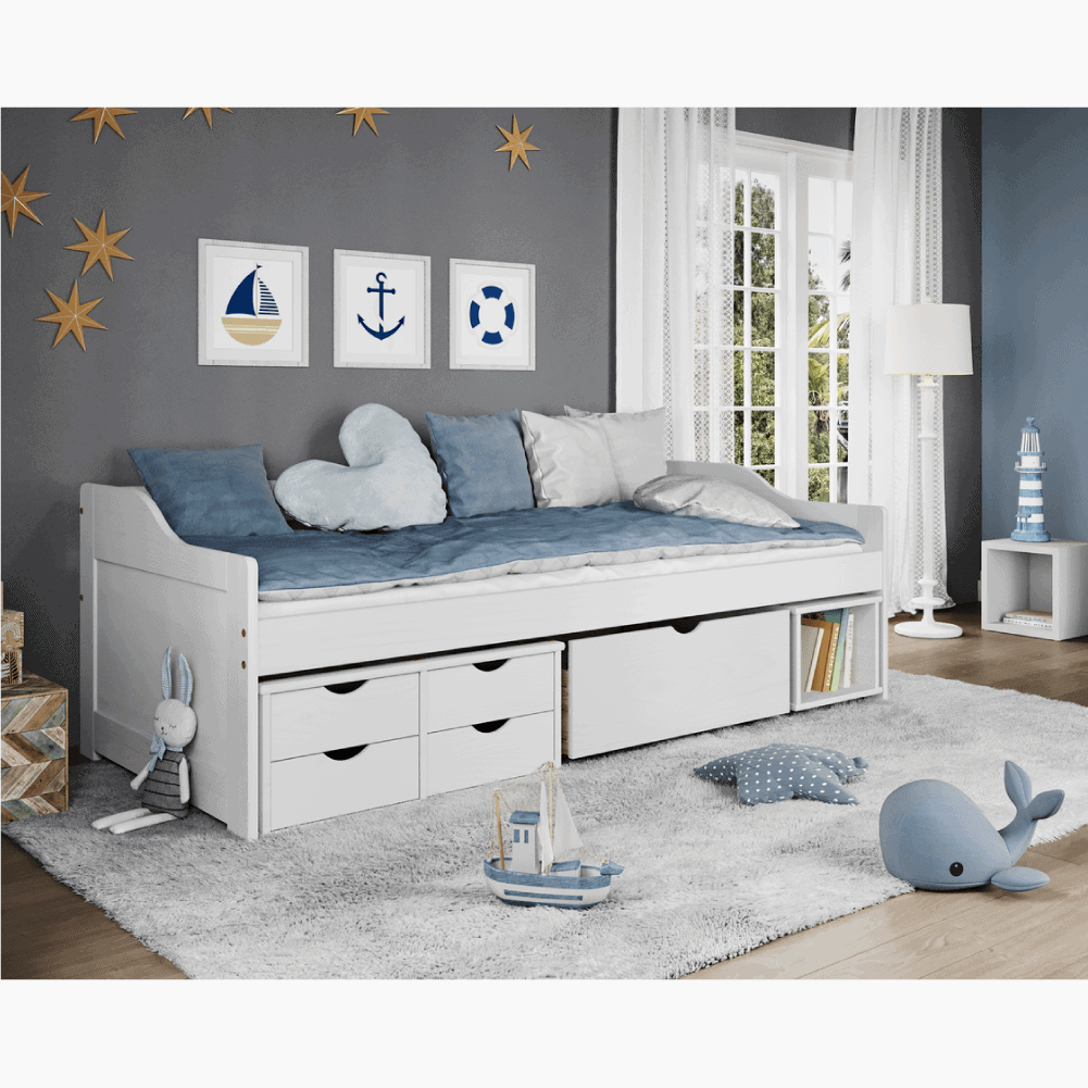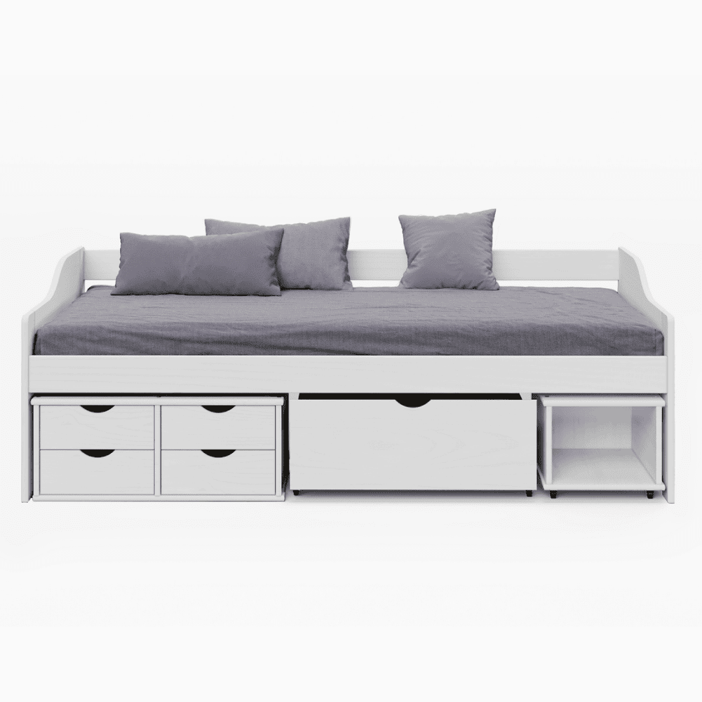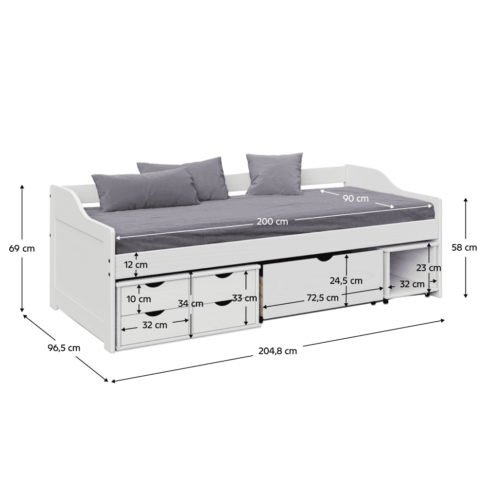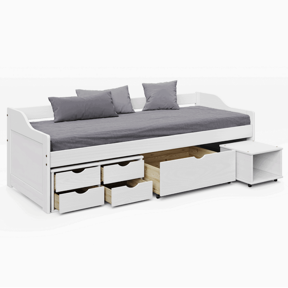 Pat cu spaţiu de depozitare, alb, lemn masiv, 90×200, MAXI NEW