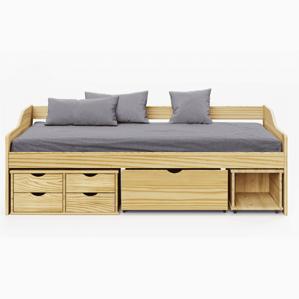 Pat cu spaţiu de depozitare, natural, lemn masiv, 90×200, MAXI NEW