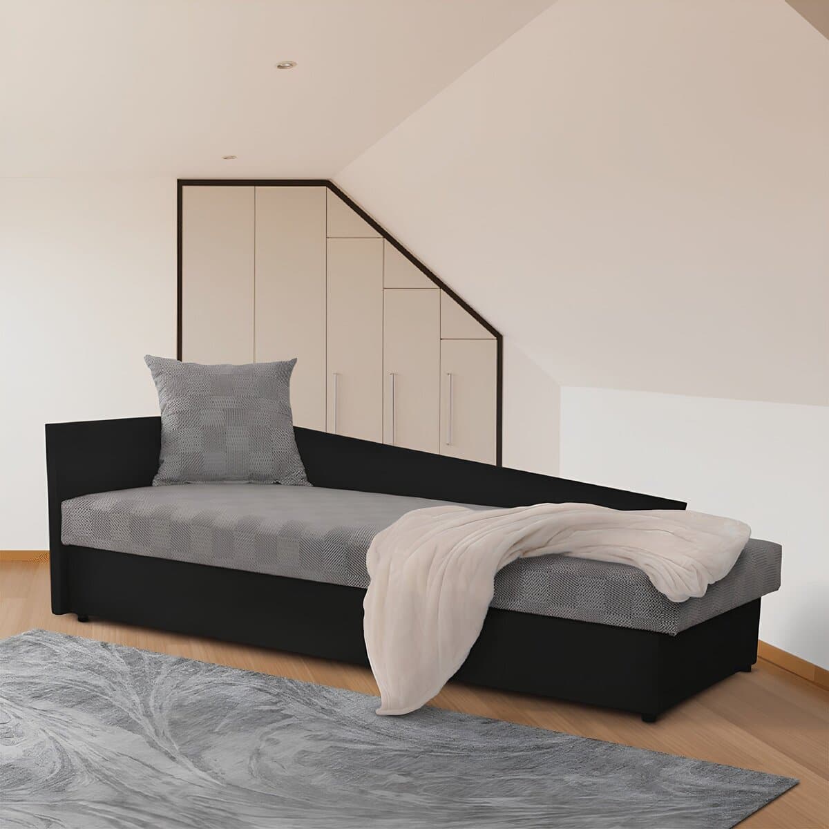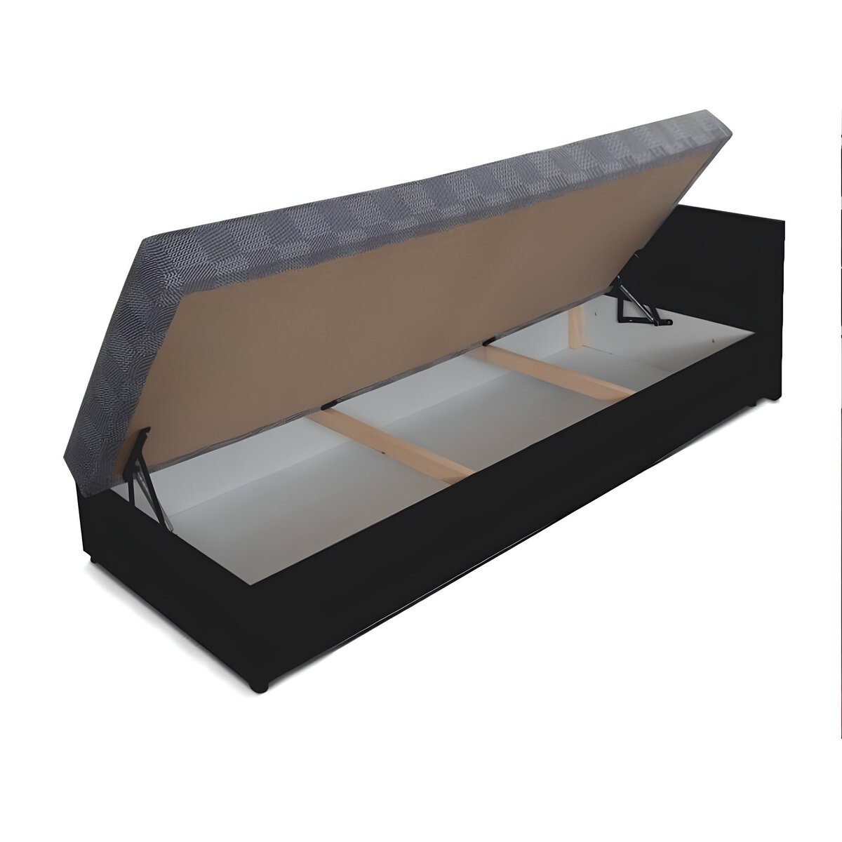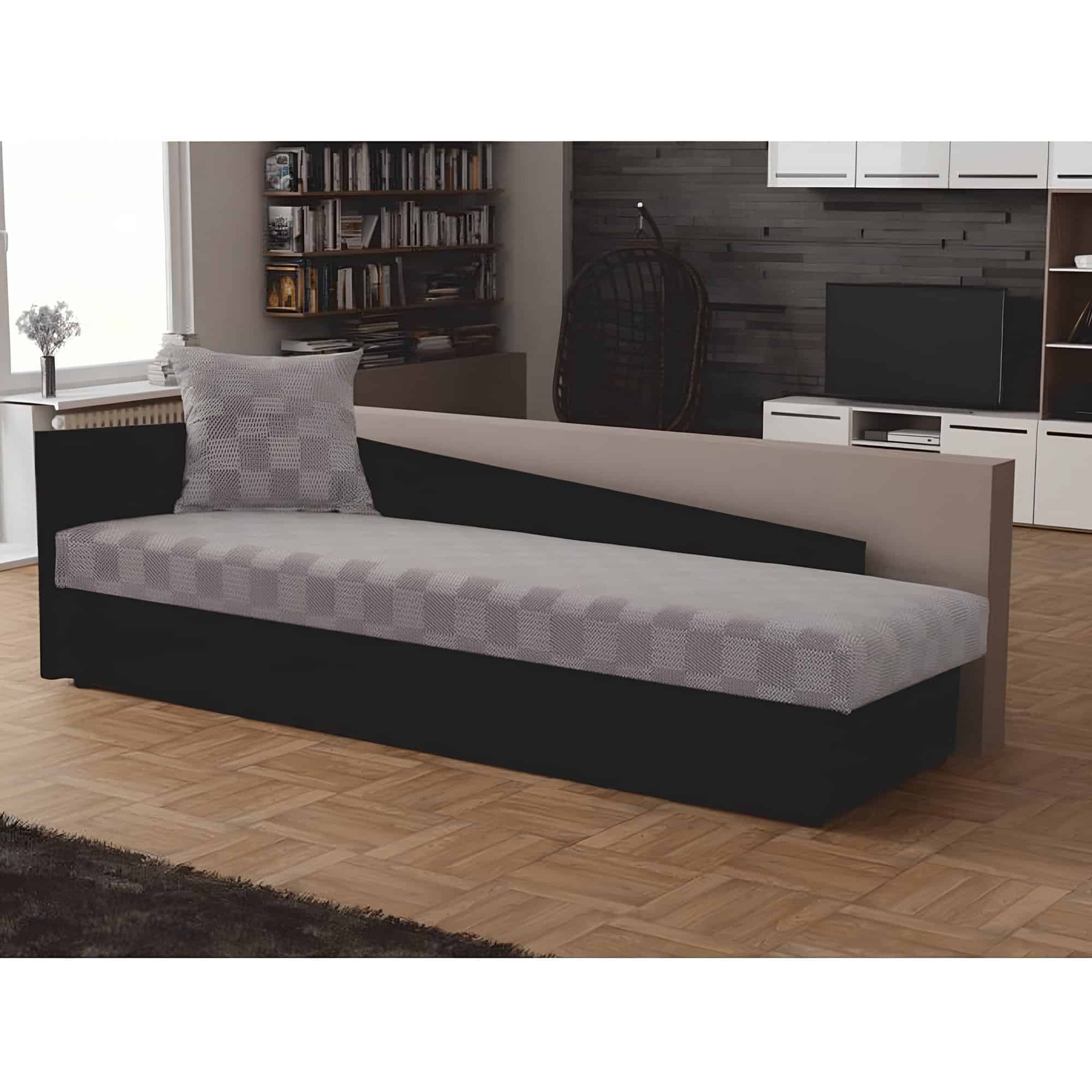 Pat cu spaţiu pentru depozitare, negru/gri cu model, stânga, JUDIT