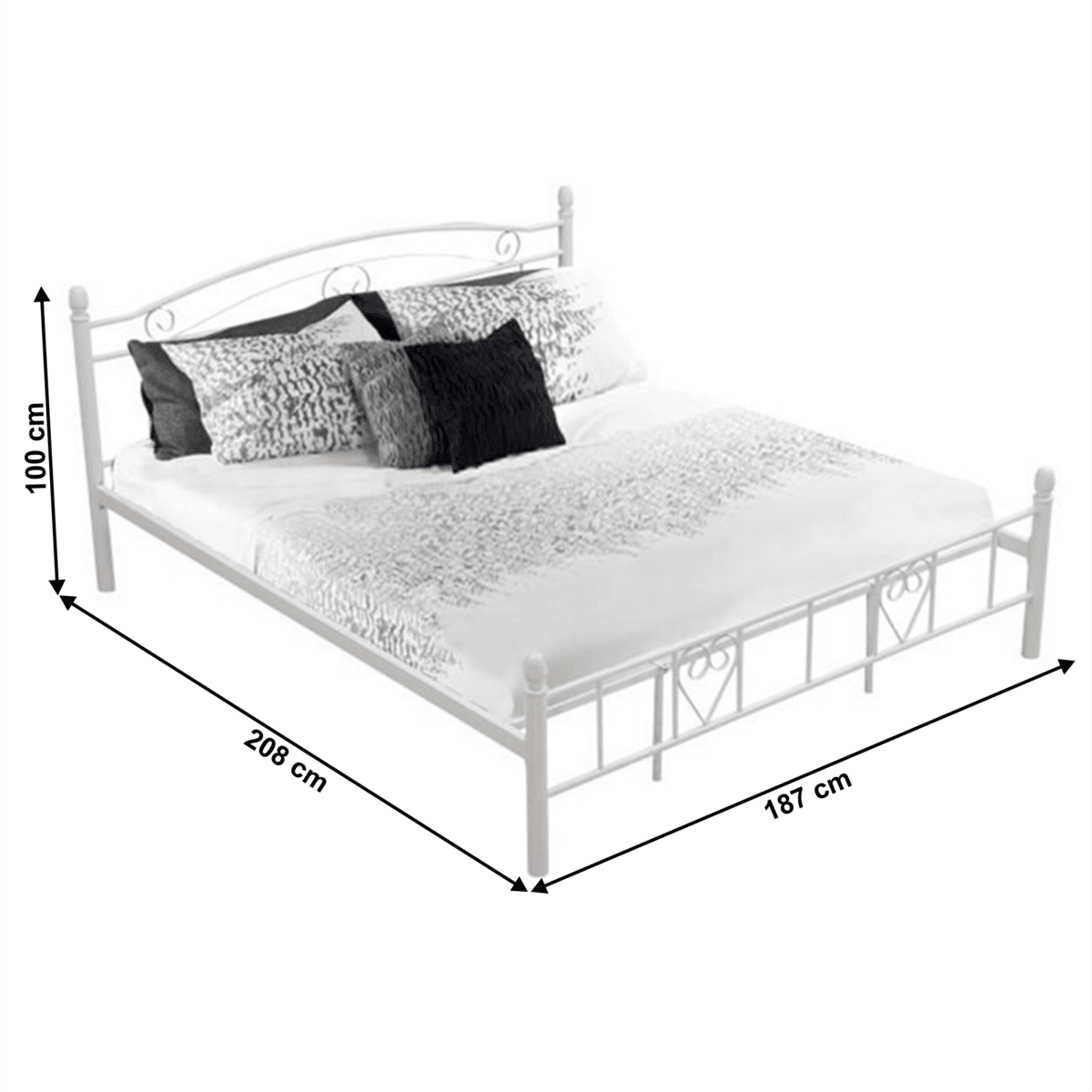 Pat de metal cu somiere, 180×200, alb, BRITA NEW