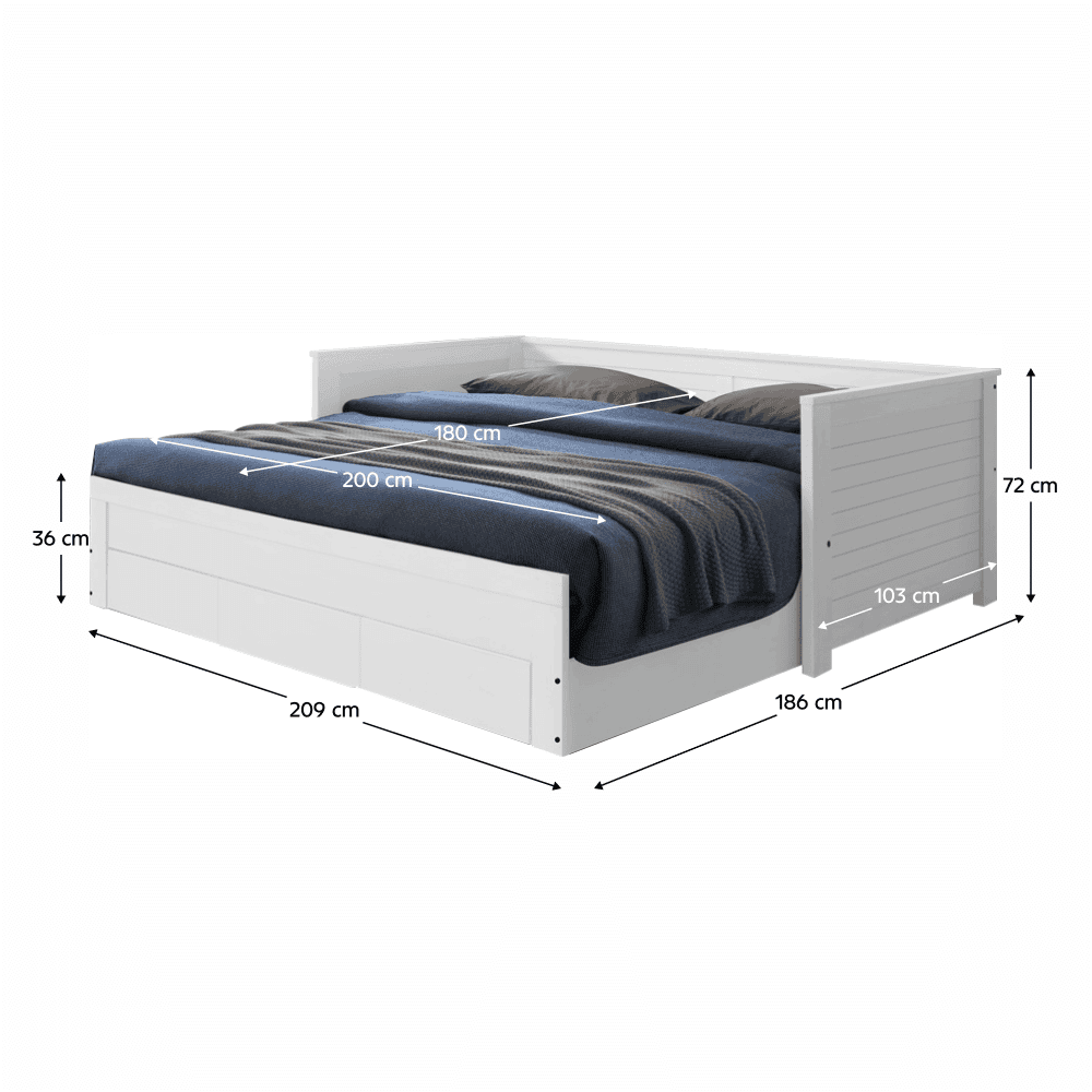 Dimensiunile patului după deschidere (lxAxh): 180×200 cm