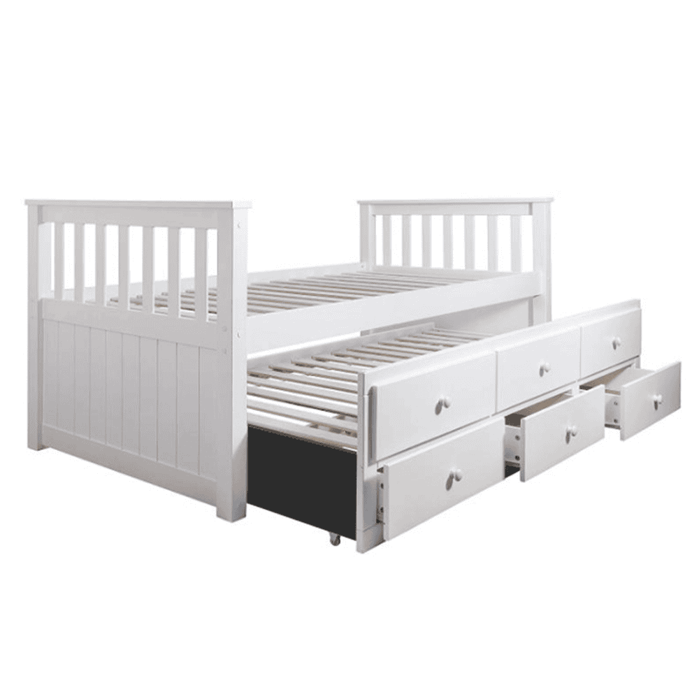 Pat dublu copii cu spaţiu de depozitare, lemn de cauciuc/MDF, alb, AUSTIN NEW