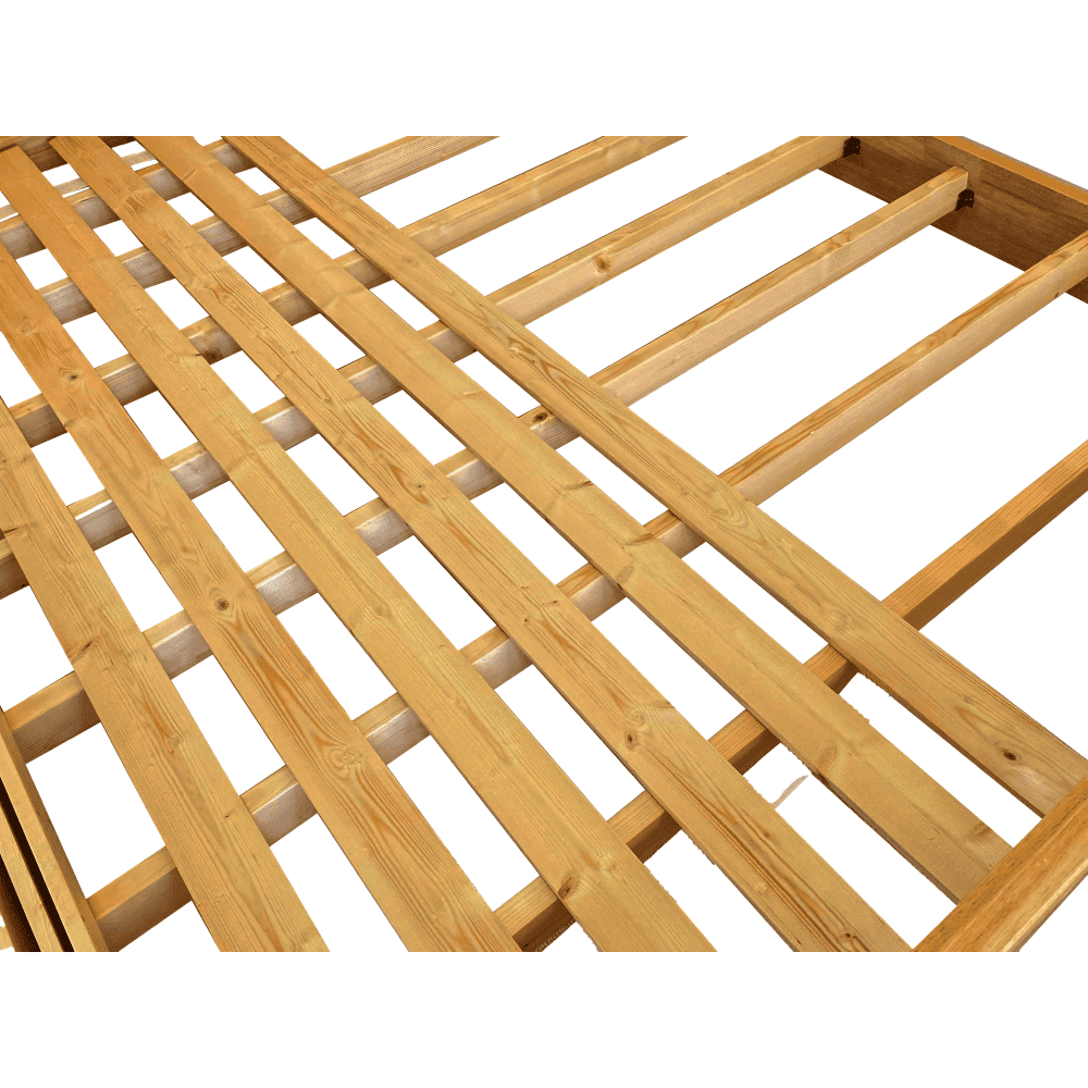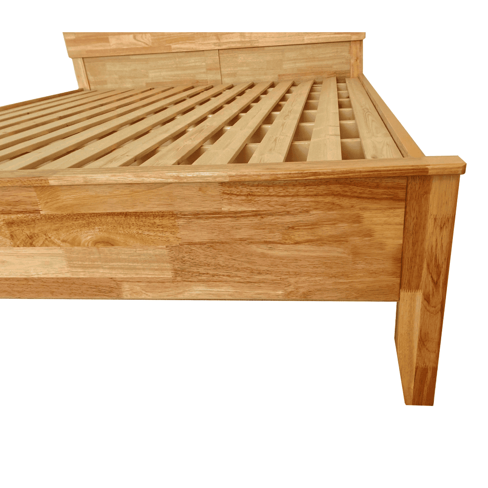Material: lemn de cauciuc Finisajul suprafeţei la lemnul masiv: lac Culoare: naturală Dimensiuni (Lxlxh): 167,5x207x87,5 cm Suprafaţa pentru dormit (Lxl): 160×200 cm Înălţimea cadrului patului: 41,5 cm Portanţă pe persoană: 150 kg Livrat cu somieră somiera conţine lamele de pin Grosimea lamelelor: 1,4 cm Lăţimea lamelelor: 7 cm