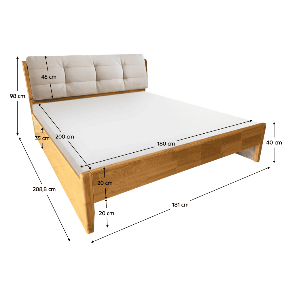 Pat matrimonial, 180×200, lemn masiv, natural, FLORENCIA