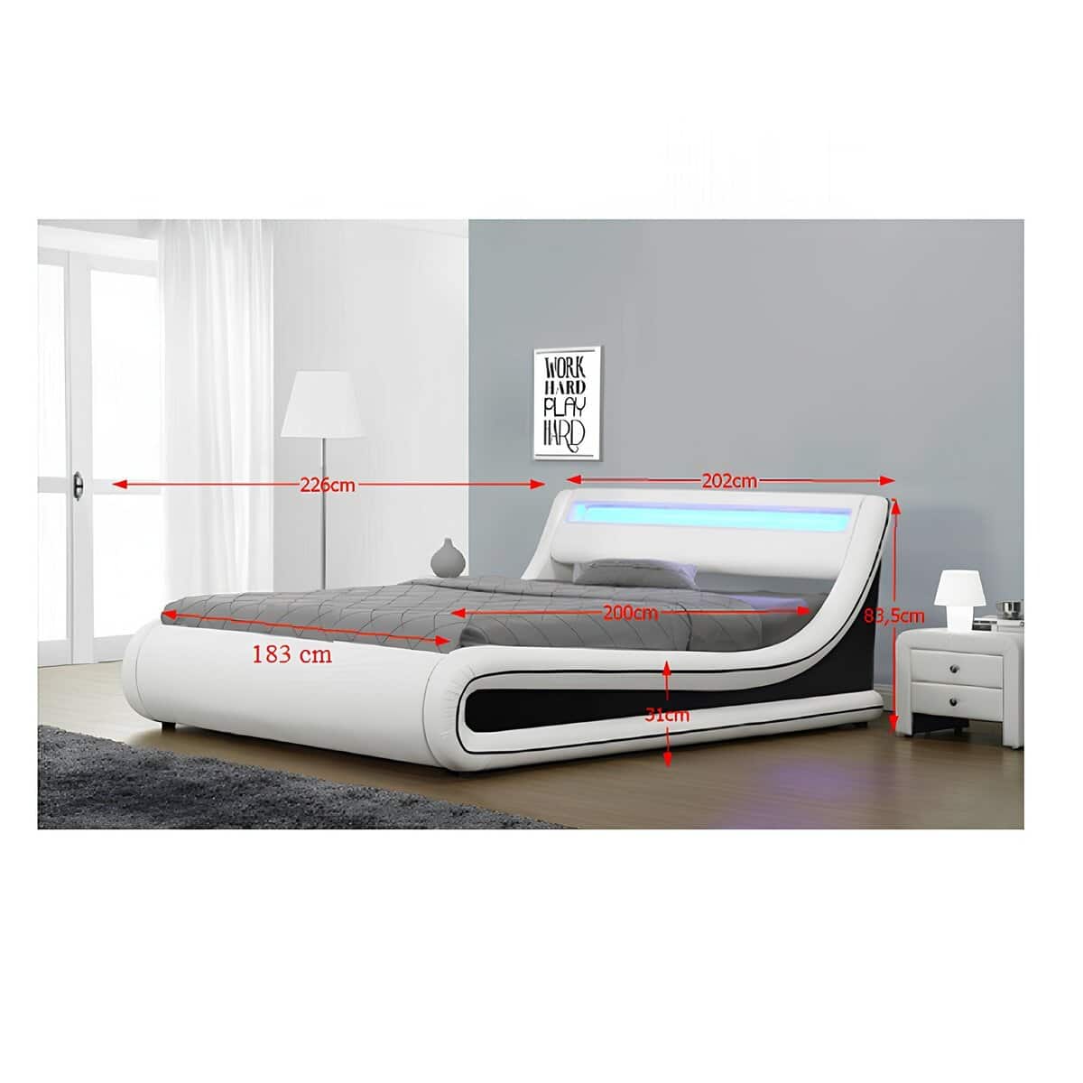 Pat matrimonial cu iluminare LED RGB, alb/negru, 180×200, MANILA NEW