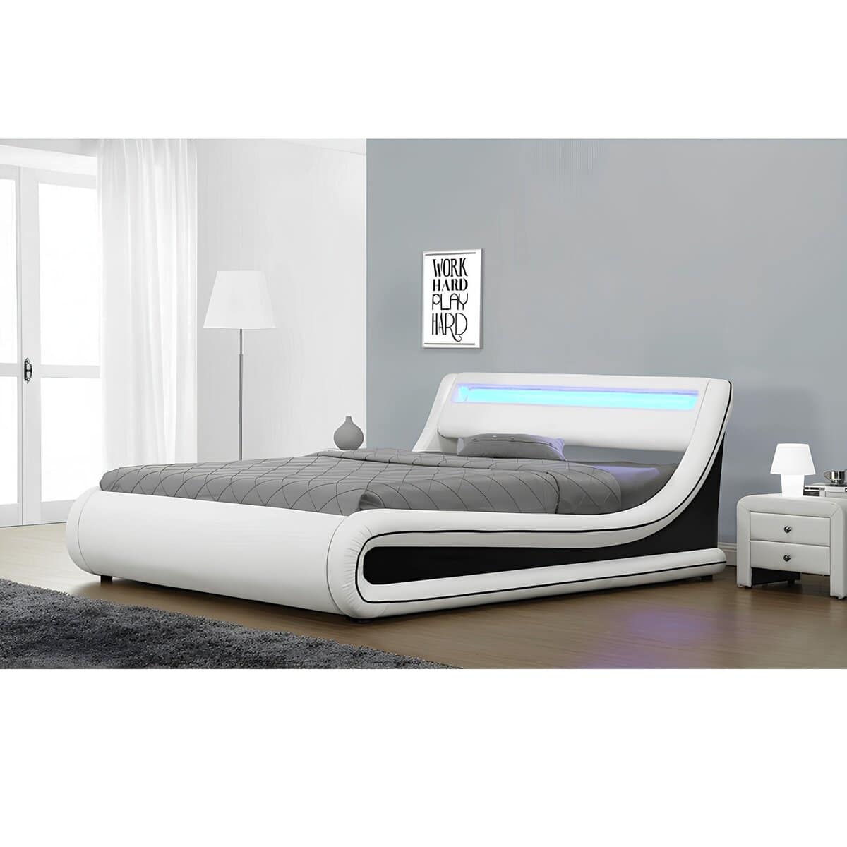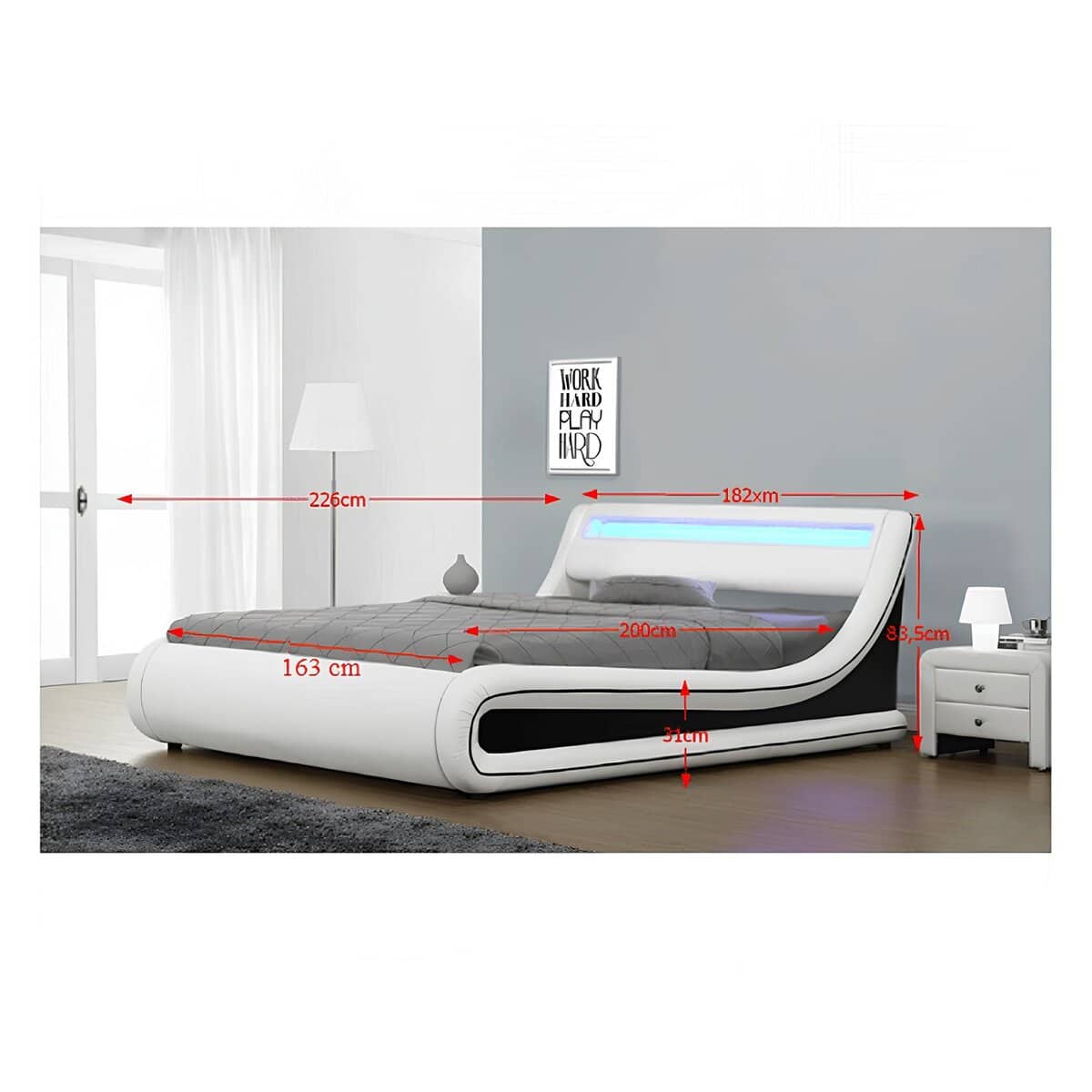 Pat matrimonial cu RGB LED iluminare, alb/negru, 160×200, MANILA NEW
