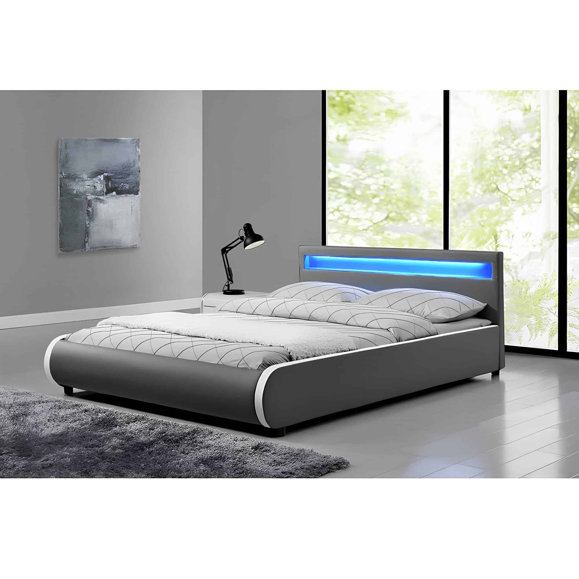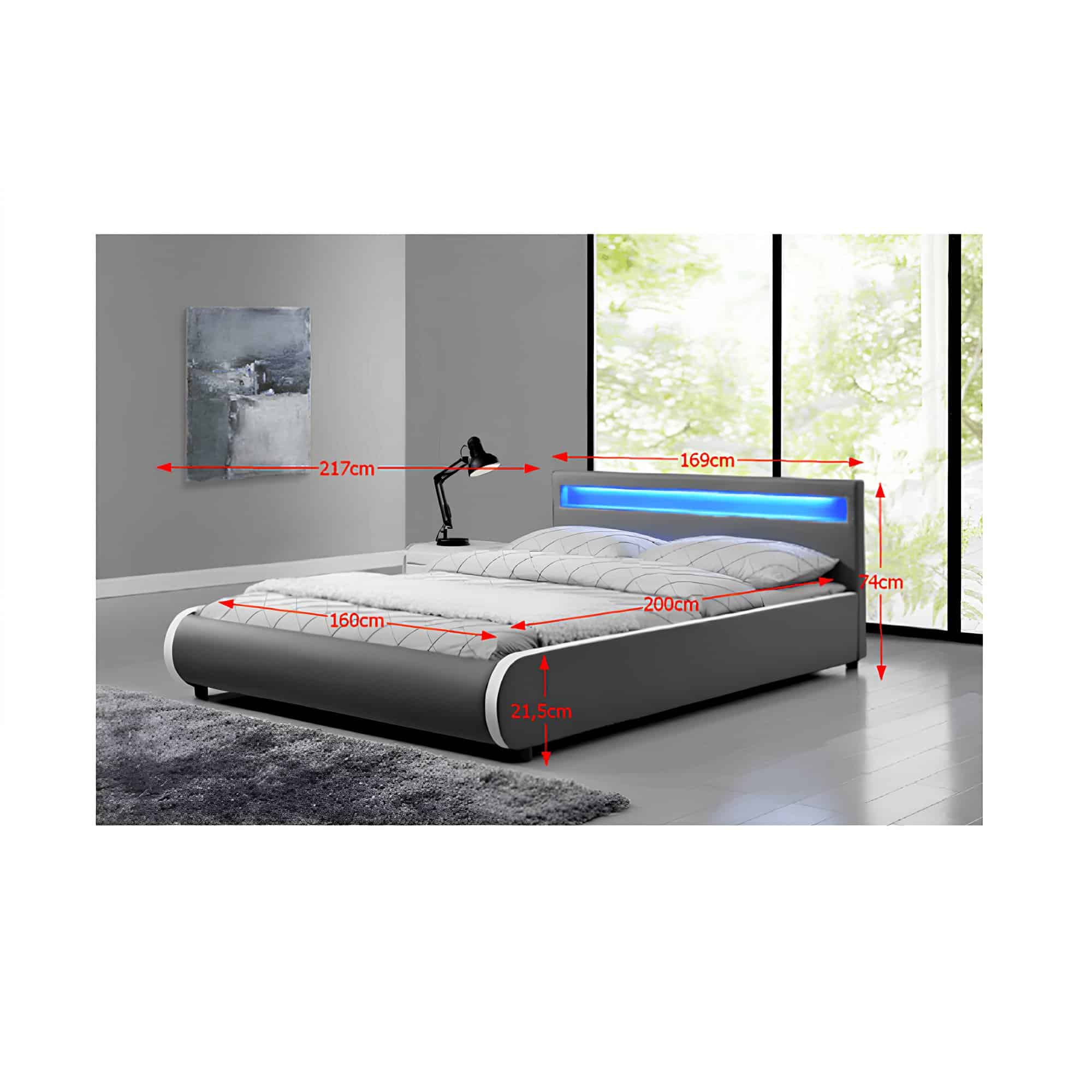 Pat matrimonial cu RGB LED iluminare, gri, 160×200, DULCEA