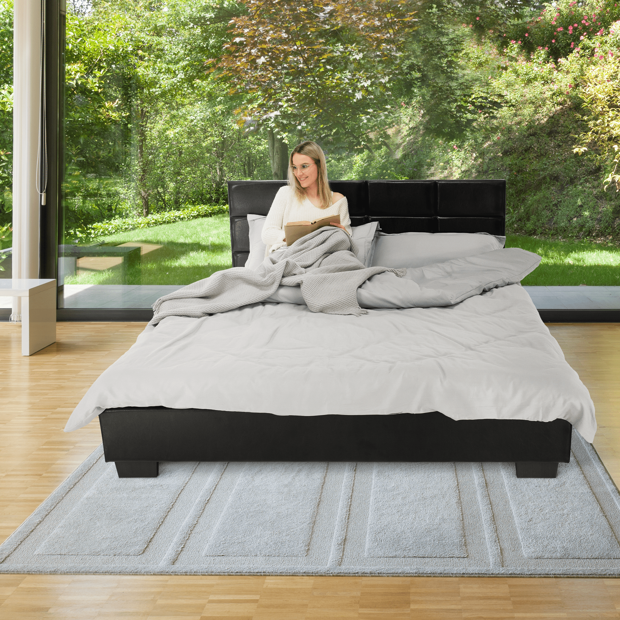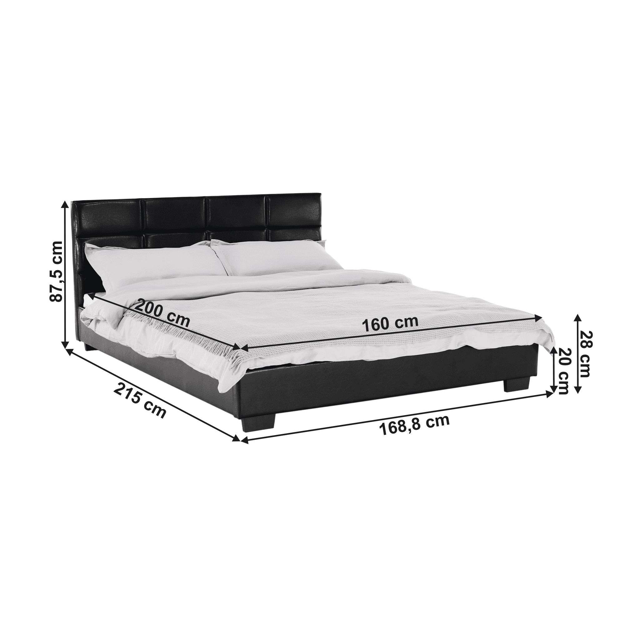Pat matrimonial cu somieră, 160×200, piele eco neagră, MIKEL
