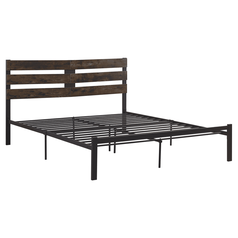Pat matrimonial cu somieră, stejar rustic/metal, 160×200, ANEYA