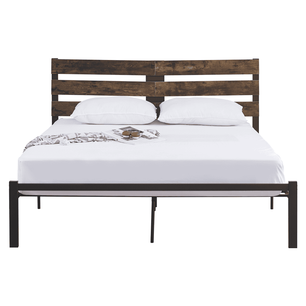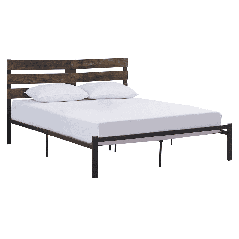Pat matrimonial cu somieră, stejar rustic/metal, 180×200, ANEYA