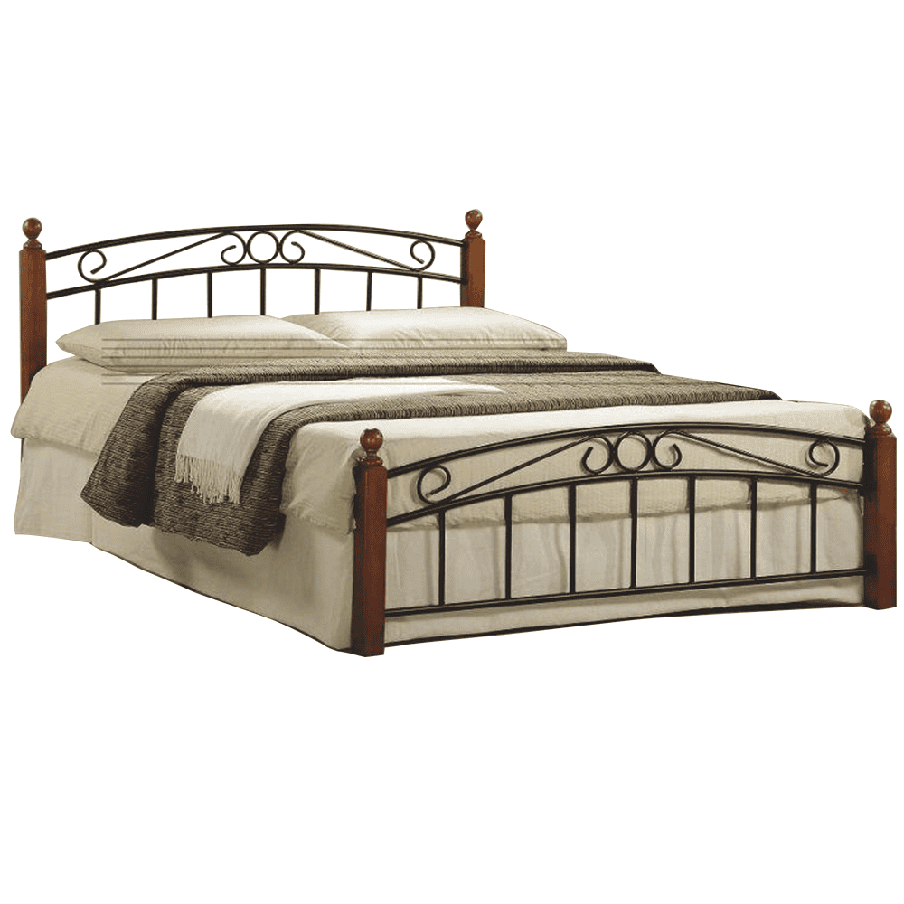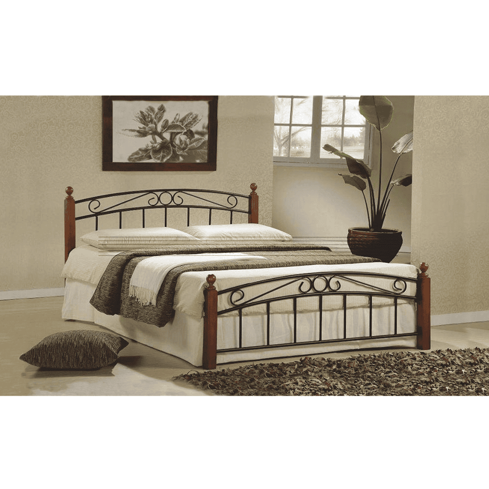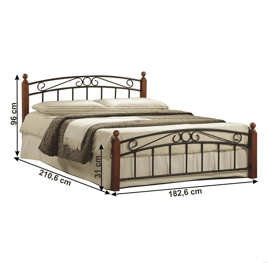 Pat matrimonial, lemn cireş/metal negru, 180×200, DOLORES