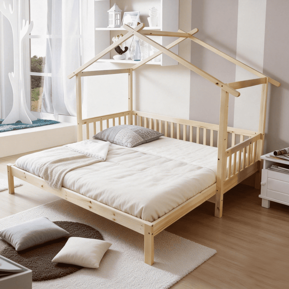 Pat Montessori cu pat suplimentar, natural, 90×200, KESIO