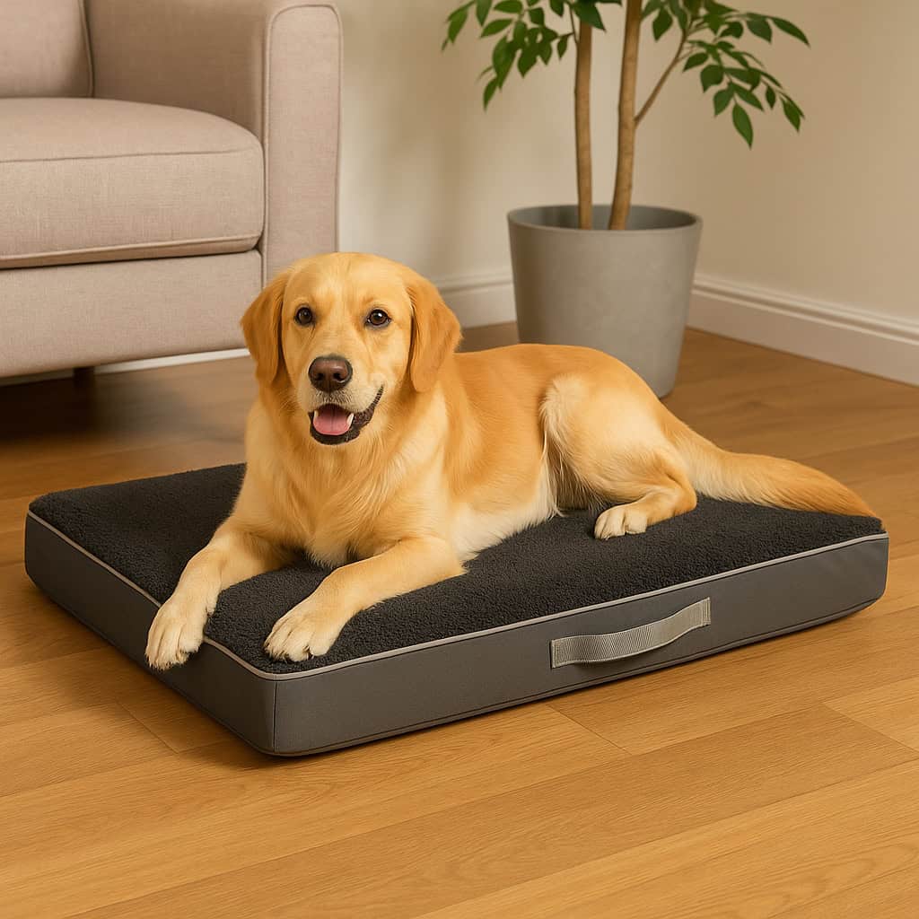 - Patul ortopedic ofera suport optim pentru muschii si articulatiile cainelui, reducand presiunea si imbunatatind calitatea somnului. Forma dreptunghiulara si dimensiunile generoase permit animalului sa se intinda liber, in orice pozitie confortabila. Husa detasabila usureaza curatarea, iar materialele sigure si hipoalergenice il fac potrivit pentru toate rasele. Caracteristici principale: