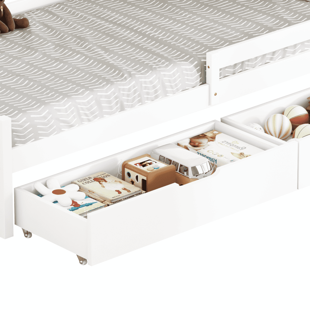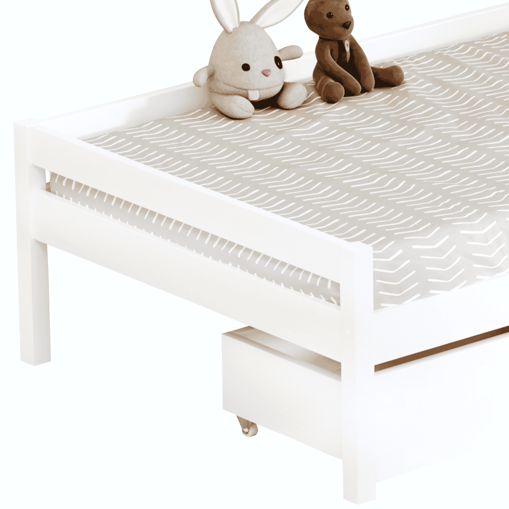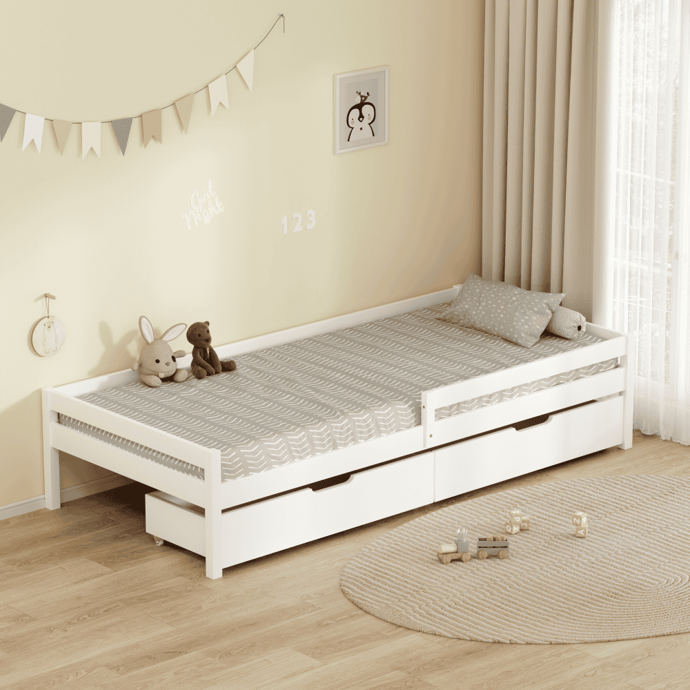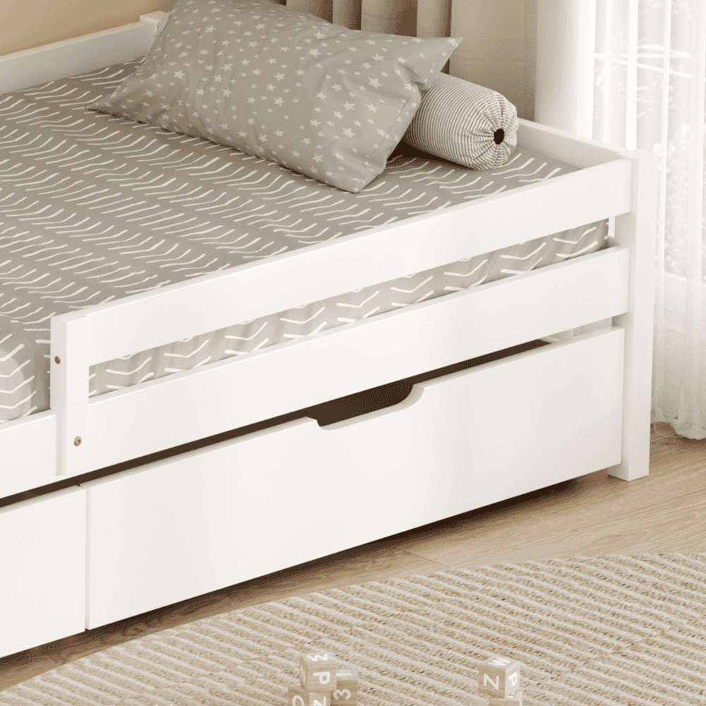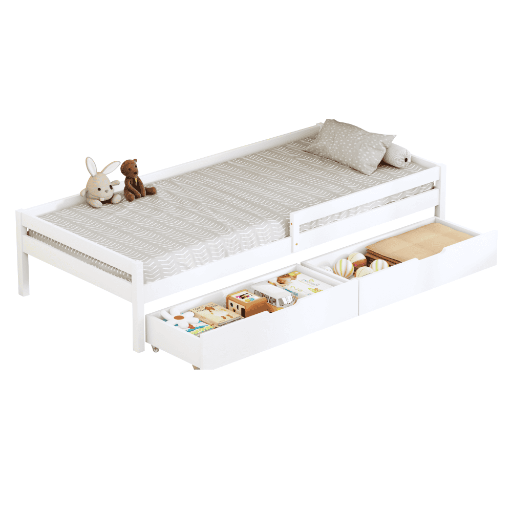 Pat pentru copii cu spaţiu de depozitare, 90×200, alb, MIX NEW