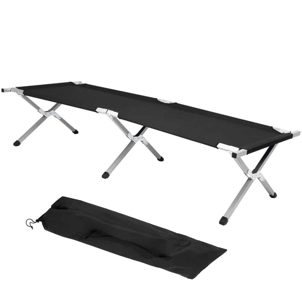 Pat pliant pentru camping, structura metalica, 190x74x42cm, 150kg, negru Mob360