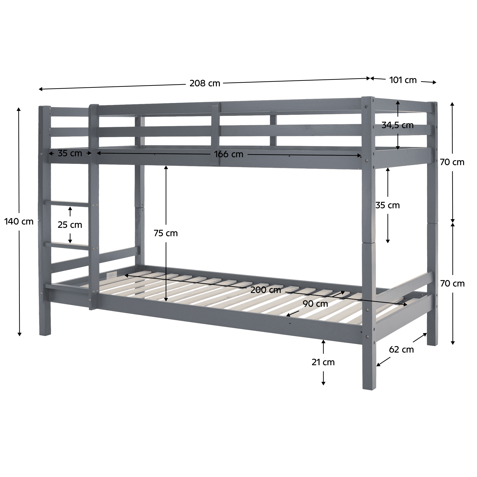 Pat supraetajat, 90×200, lemn masiv, gri, INEZA
