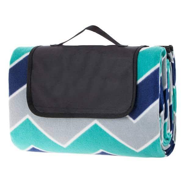 Patura pentru picnic sau plaja, cu folie izolatoare si maner, 180x220cm, albastru verde Mob360