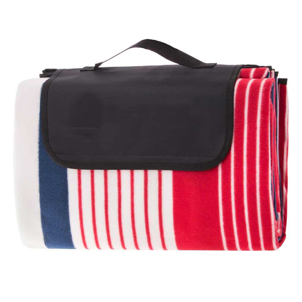 Patura pentru picnic sau plaja, cu folie izolatoare si maner, 200x200cm, albastru rosu Mob360