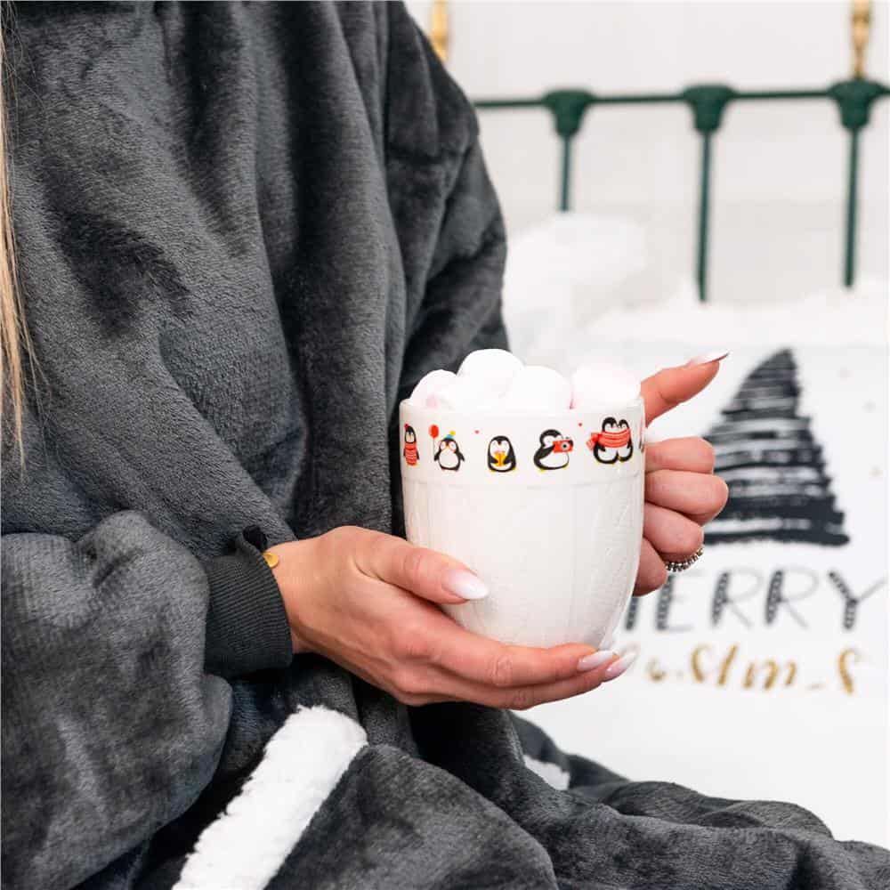 Patura tip hanorac, cu maneci, gluga si buzunare, material plus, marime universala, grafit Mob360 – produs disponibil în magazinul Mob360.