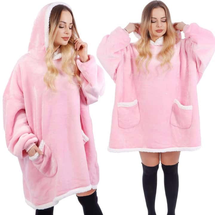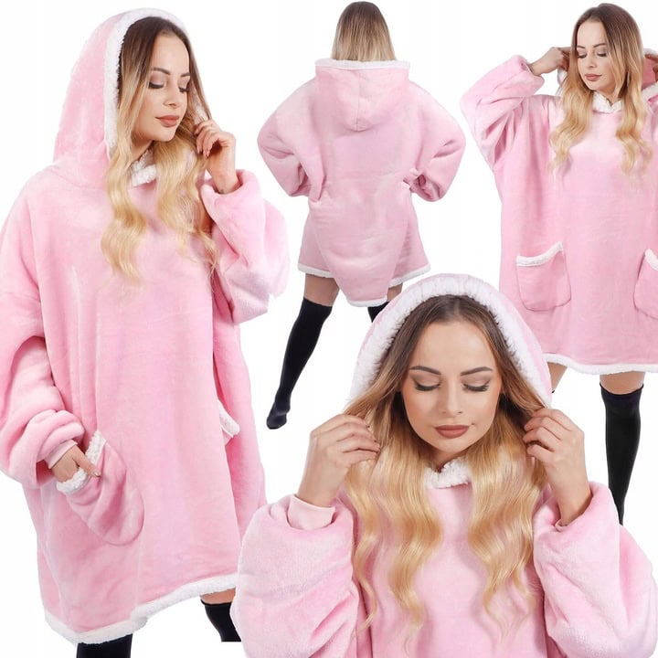Patura tip hanorac, cu maneci, gluga si buzunare, material plus, marime universala, roz Mob360 – produs disponibil în magazinul Mob360.
