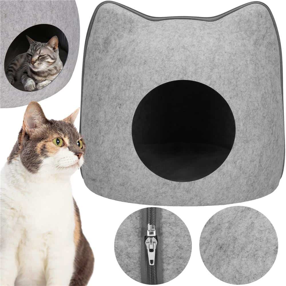 Culoare: gri Material: poliester Patul este format din doua parti, inchise cu fermoar Un pat cu o perna moale detasabila Inaltime totala: 35,5 cm Latime totala: 38 cm Adancime: 36 cm Latime interioara: 37,5 cm Perna moale: 35 x 35 cm Diametru gaura: 18 cm Grosimea muchiei: 2 mm Patul pentru pisici va va permite sa oferiti animalului dvs. de companie un loc regal pentru odihna. Materialul extrem de placut, pufos, asigura un confort deosebit, oferind in acelasi timp pisicii dvs. un colt cald si sigur. Materialul patului va face orice animal de companie sa se simta confortabil. Firele lungi, care sunt extrem de placute la atingere, va vor invalui animalul de companie in caldura. Mai mult, materialul moale si delicat nu va irita pielea sau blana pisoiului dumneavoastra. Un mare avantaj al patului este baza sa, care a fost prevazuta cu stifturi antiderapante pentru a preveni alunecarea patului pe podea. Acest element asigura faptul ca produsul se lipeste ferm de podea si nu se misca atunci cand animalul intra in incapere. In interiorul patului exista o perna moale pentru a oferi si mai mult confort pisicii dumneavoastra. Perna poate fi indepartata si utilizata in afara patului pentru pisici si poate fi, de asemenea, spalata manual. Informatii suplimentare: Va rugam sa spalati manual Nu clorinati sau inalbiti Nu uscati cu masina Nu calcati Nu curatati chimic