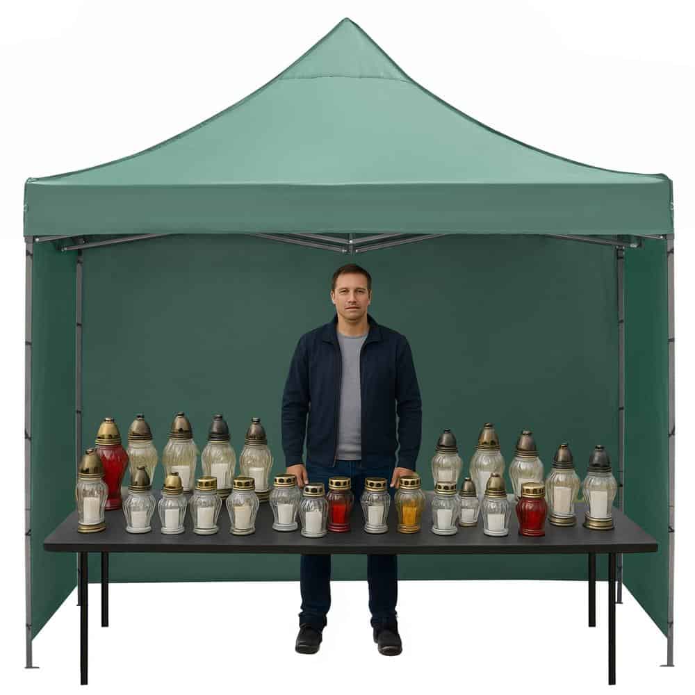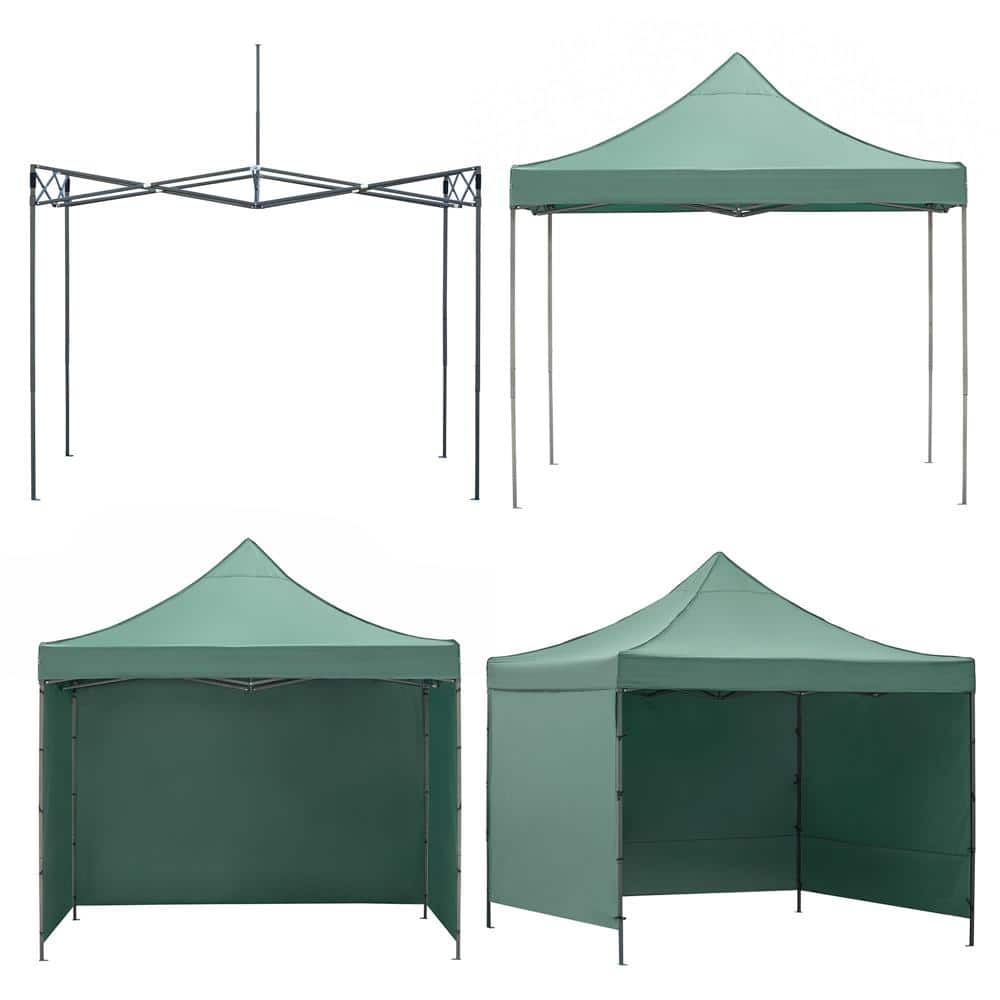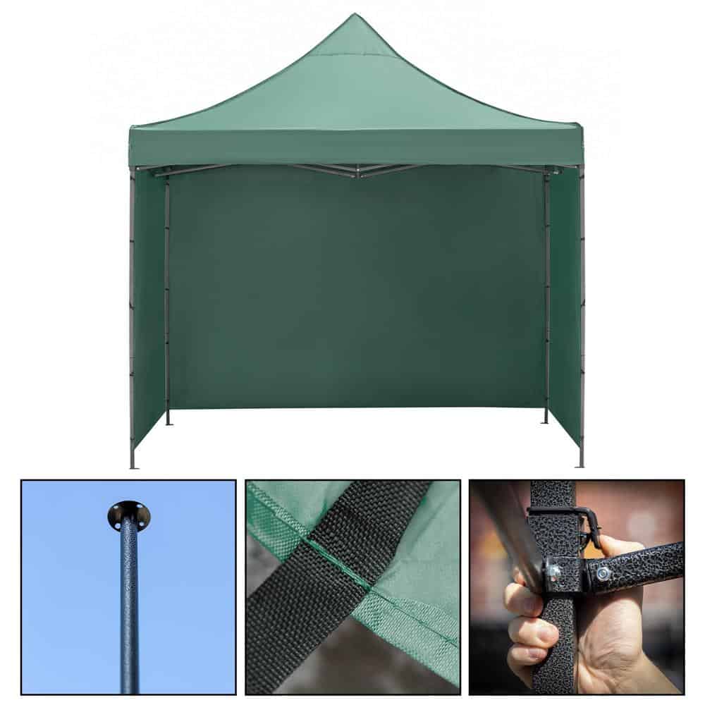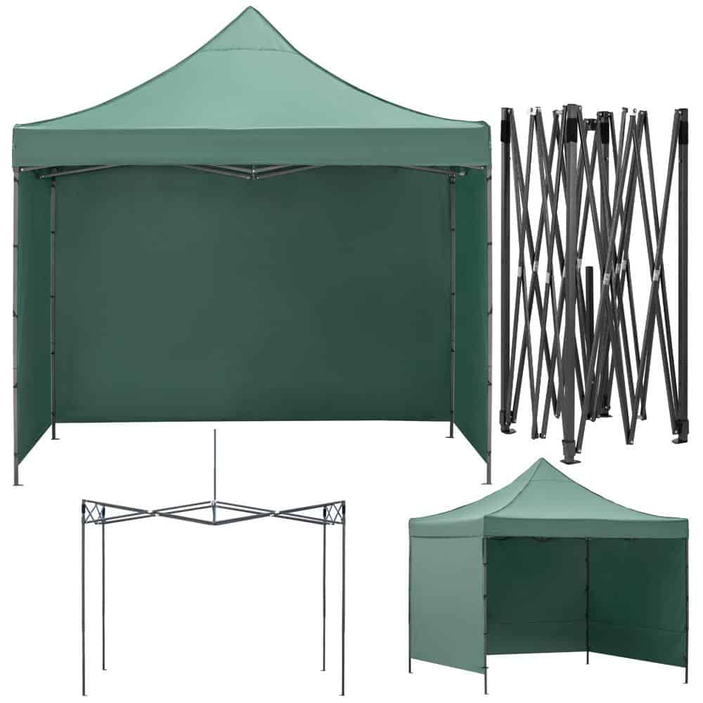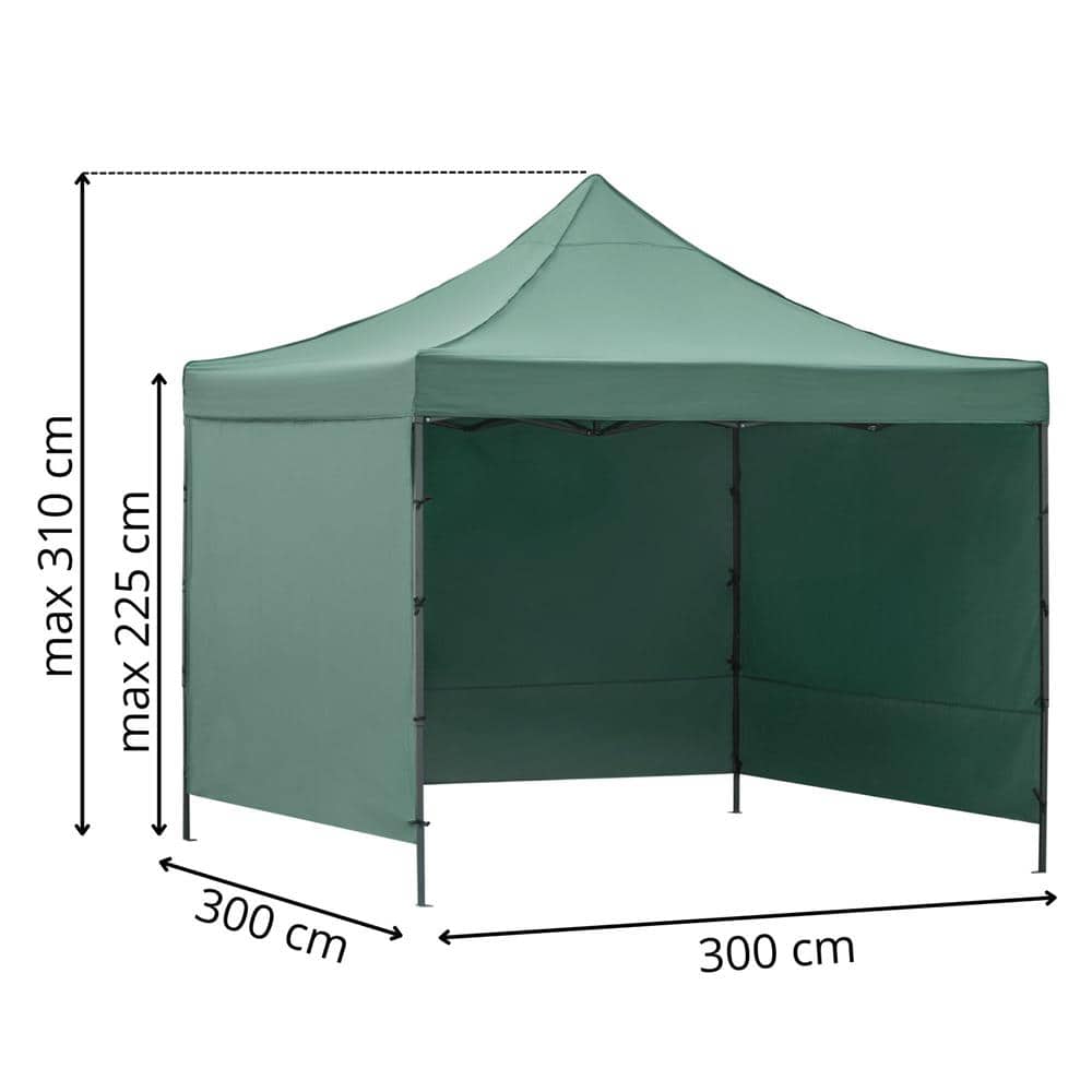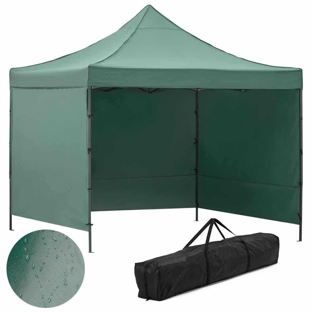Pavilion pliabil gradina 3×3 m cu acoperis impermeabil si 3 pereti laterali, structura metalica, inaltime reglabila, verde Mob360