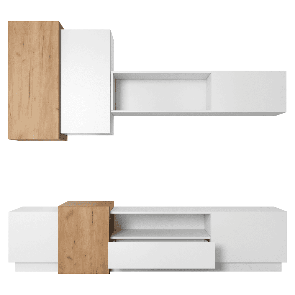 Perete camera de zi, stejar craft auriu / alb, TRIO