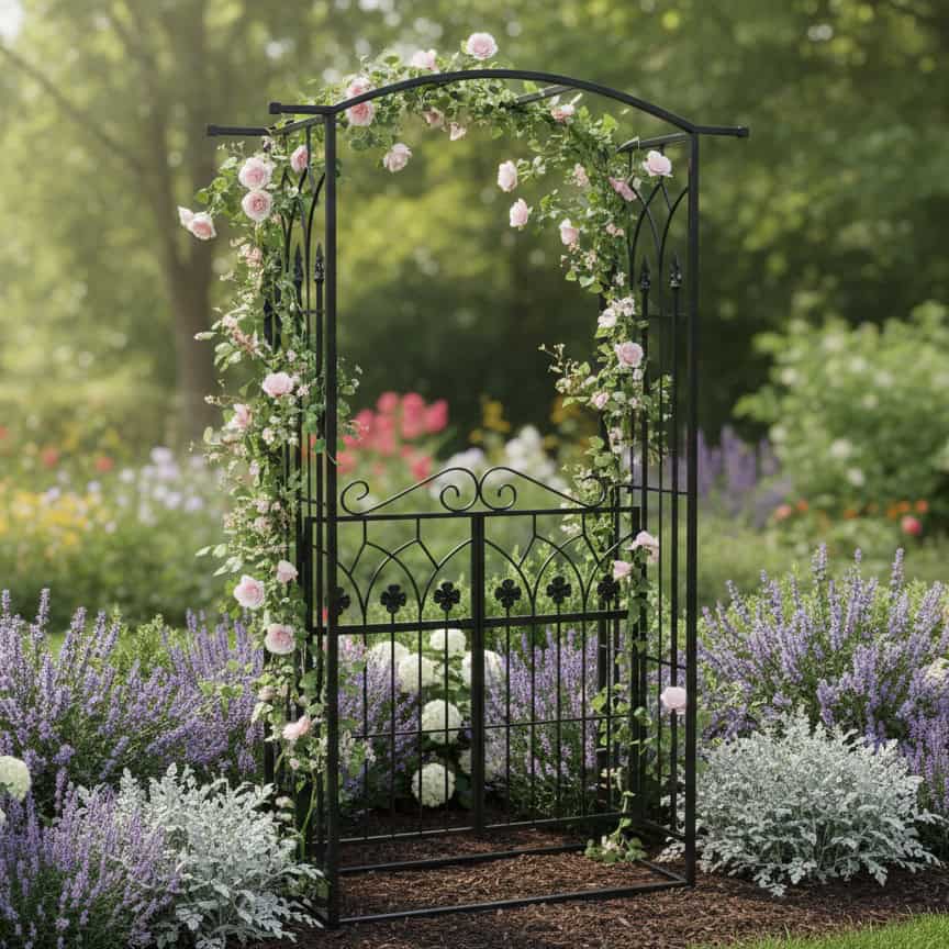 Pergola gradina metalica cu poarta, suport plante cataratoare, 106x50x217 cm, negru Mob360