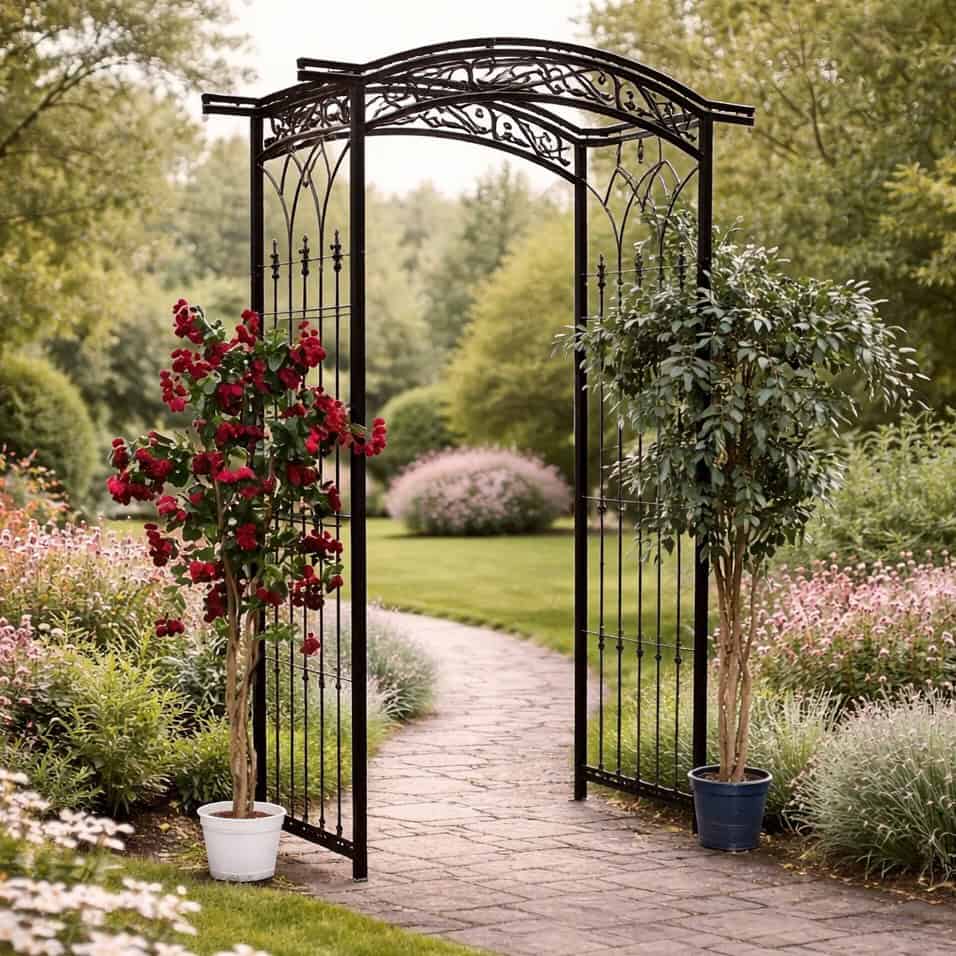 Pergola gradina metalica, suport plante cataratoare, 105x46x215 cm, negru Mob360