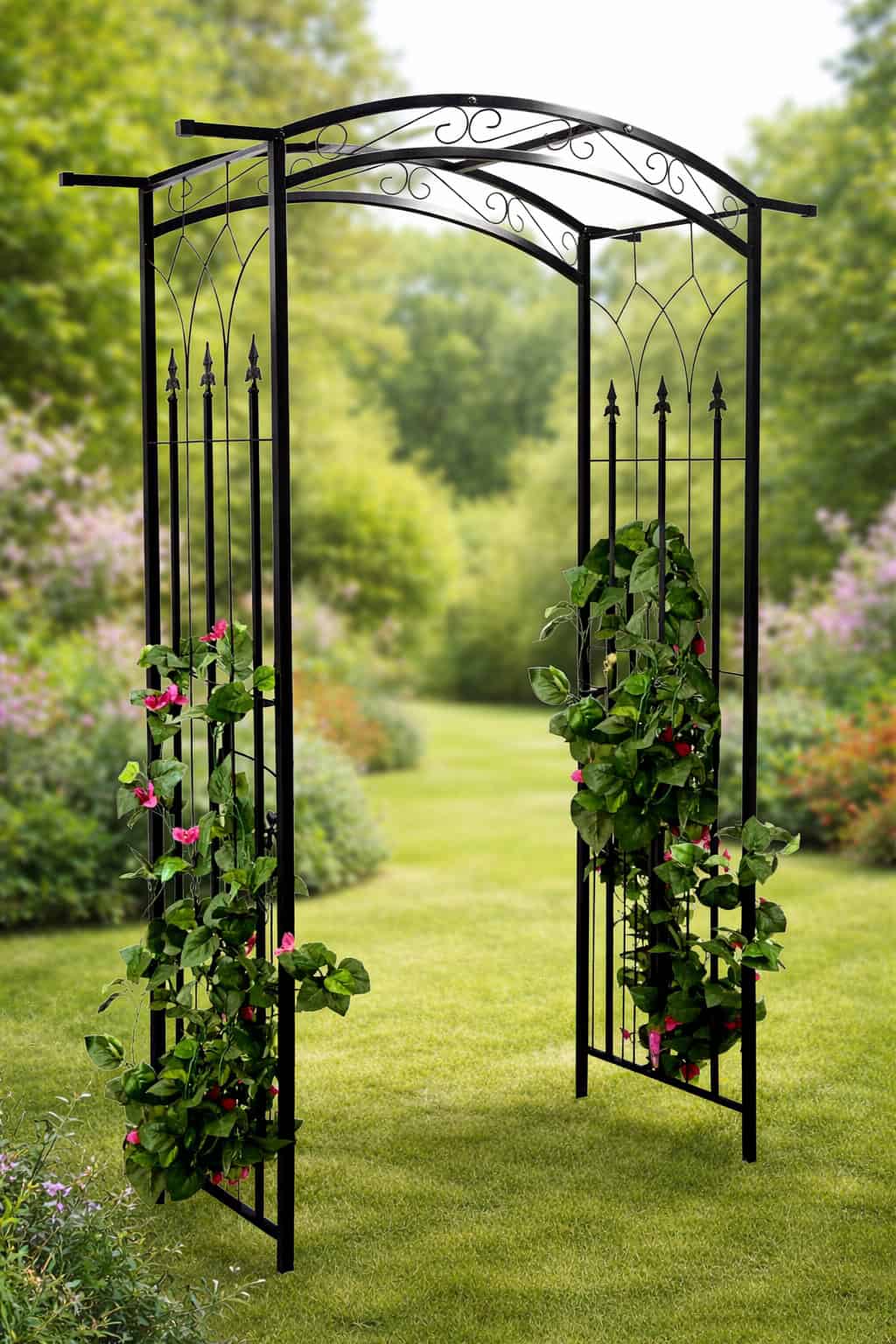 - Pergola metalica pentru gradina 105x46x215 cm este un element decorativ elegant, ideal pentru alei, intrari sau delimitarea zonelor din curte. Designul sau arcuit ofera un aspect armonios si pune in valoare plantele cataratoare. Realizata din otel acoperit cu pulbere, pergola este rezistenta la intemperii si potrivita pentru utilizare indelungata in exterior. Constructia este stabila, iar montajul se realizeaza rapid si usor. Caracteristici principale: