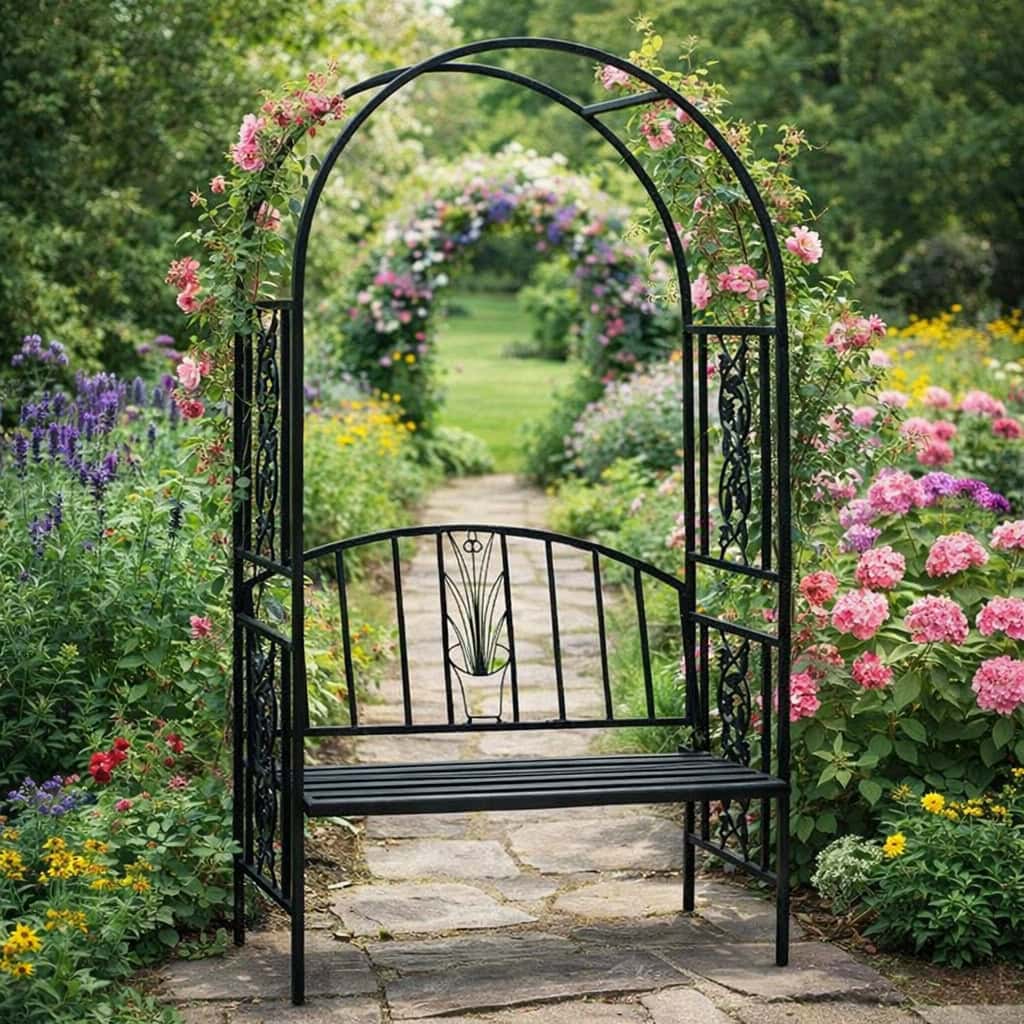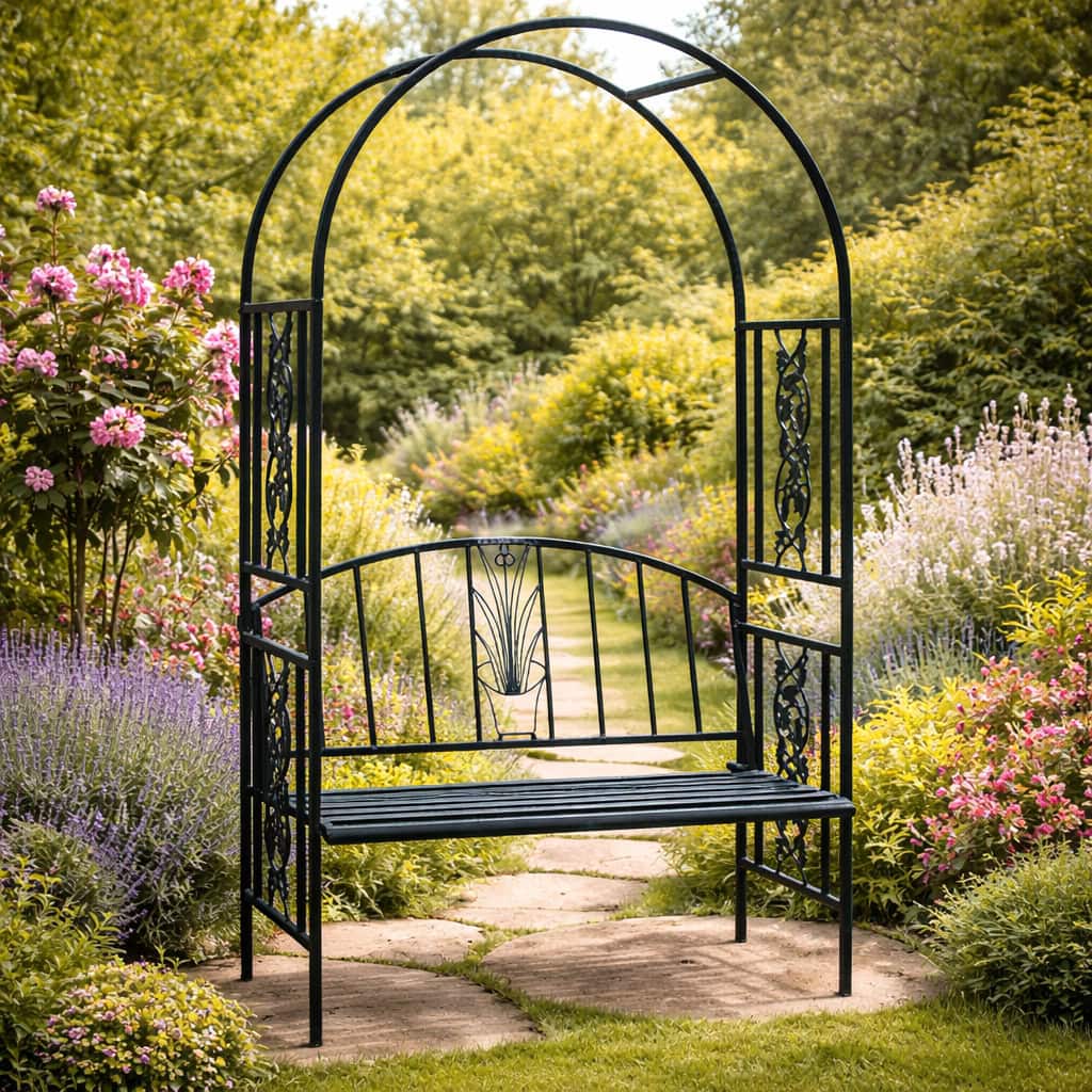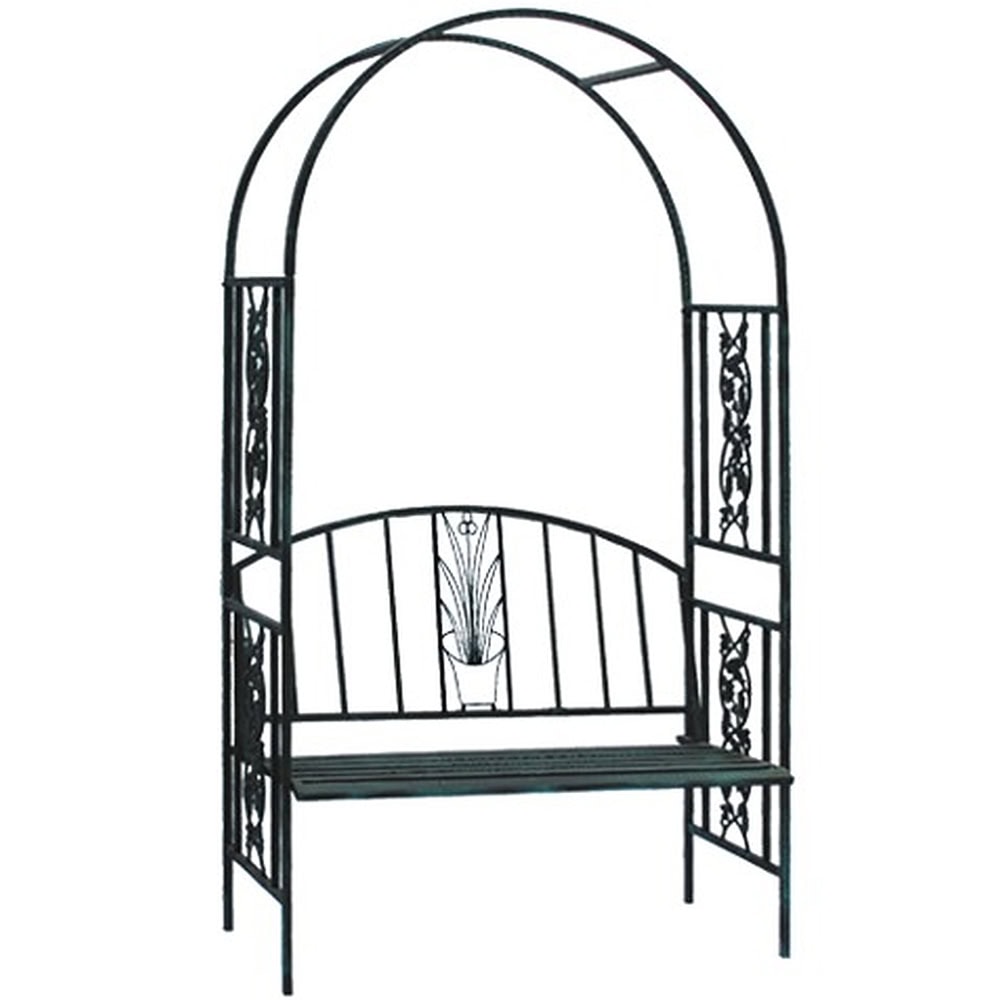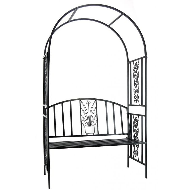 Pergola pentru gradina cu banca, structura metalica solida, 122x58x203 cm, negru Mob360