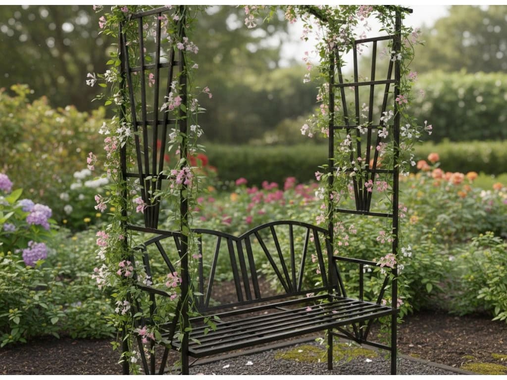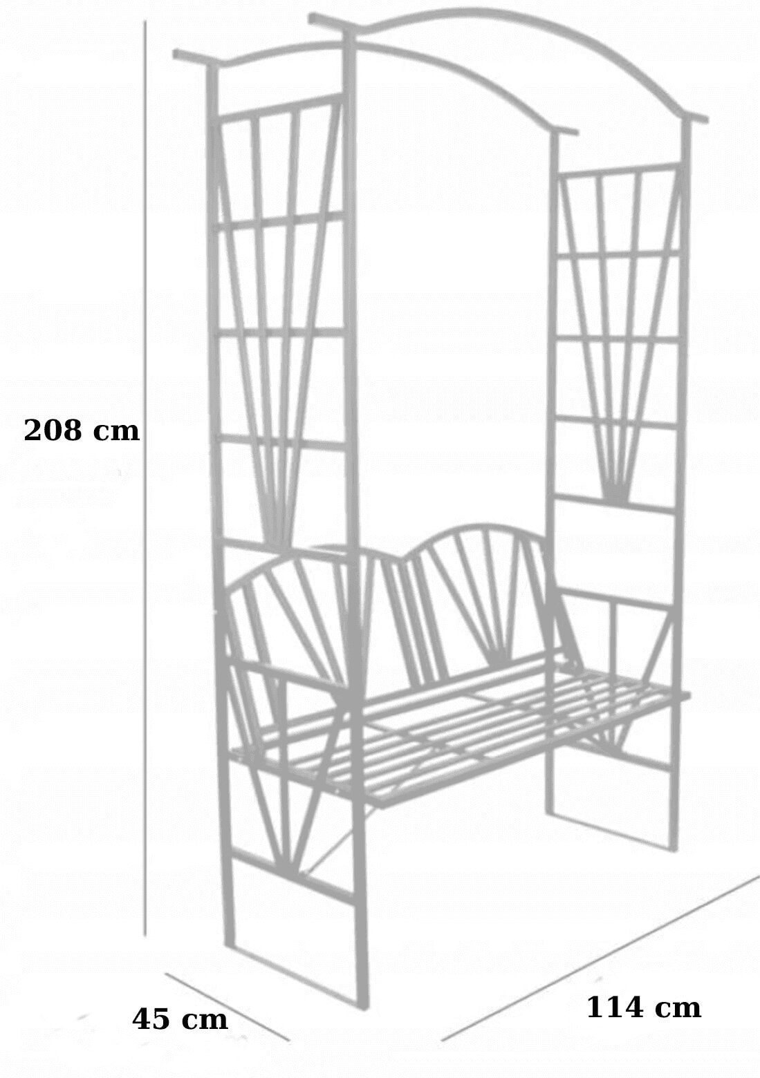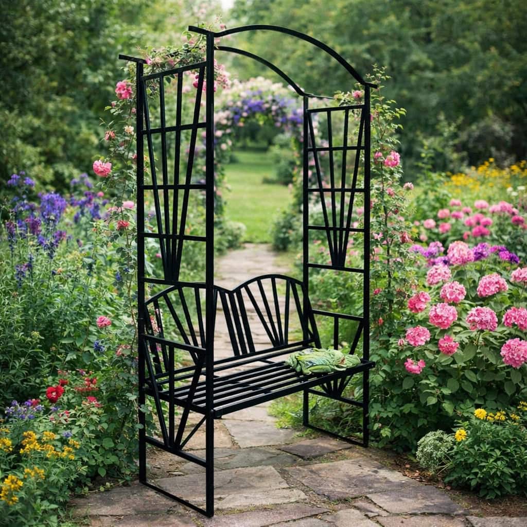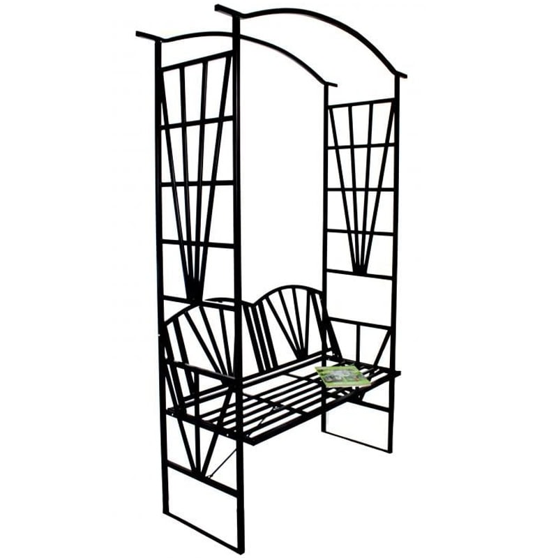 Pergola pentru gradina cu banca, suport plante cataratoare, structura otel, 114x45x208 cm, negru Mob360