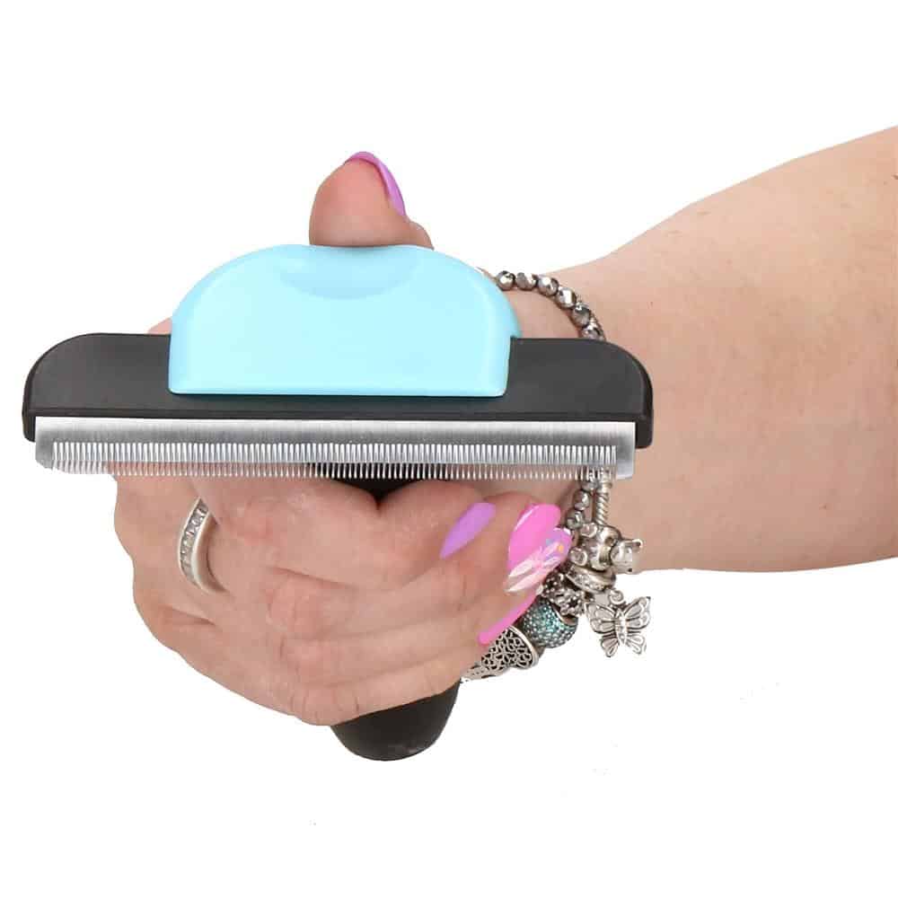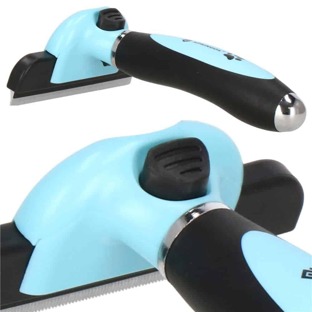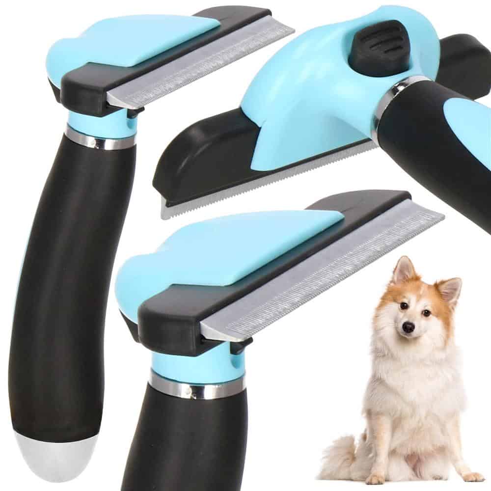 Perie trimmer pentru caini si pisici cu par lung sau scurt, autocuratare, lama 10cm, negru albastru Mob360