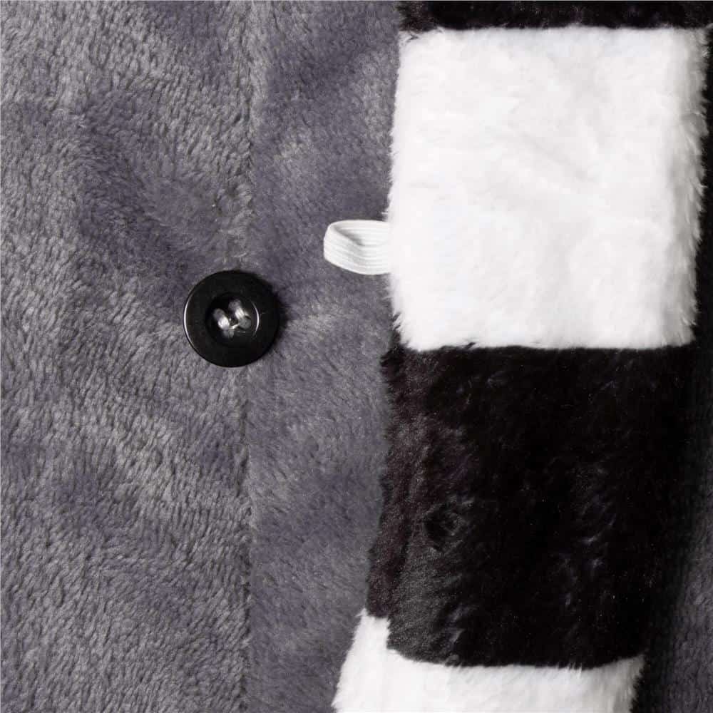 PIJAMA LEMUR : Model: lemur Material: poliester 100% Culoare: multicolor Marime: M Gluga nu este detasabila, nu are cordon de strangere Numar de buzunare: 2 Tip de inchidere: 1x fermoar (spate), 1x buton (fata) Plus: design frumos – ochi de nas, urechi si coada Dimensiuni: Lungime totala cu gluga: 170 cm Lungime totala fara gluga: 140 cm Latimea sub brate: 60 cm Lungimea picioarelor: 50 cm Lungime maneci: 60 cm Lungimea cozii: 115 cm In zilele friguroase de iarna, cautam haine calduroase si confortabile pentru noi. Pijamalele unicorn fac o treaba perfecta! Tesatura exceptional de moale la atingere, combinata cu designul plin de umor, va fi un articol indispensabil in aceasta iarna! pijamale foarte calduroase, confortabile si dintr-o singura bucata un design plin de umor, fermecator, care incurajeaza jocul buzunare laterale gluga confortabila si functionala un tip de pijamale la moda ofera atat caldura, cat si confort poate fi folosit ca o deghizare pentru orice petrecere costumata idee de cadou – pentru toata lumea, indiferent de varsta si sex tesatura lucioasa care imita blana Pijamalele exceptional de dragute sunt ideale pentru toata lumea – indiferent de sex sau varsta. Materialul foarte calduros si placut la atingere este un articol indispensabil pentru zilele reci care se apropie. Pijamalele au o croiala supradimensionata, nu limiteaza miscarea si sunt ideale pentru uzura zilnica! Pijamaua este prevazuta cu nasturi, ceea ce faciliteaza punerea si scoaterea ei. Gluga, care este cea mai distinctiva caracteristica, va va mentine capul cald si confortabil, iar fermoarul din spate faciliteaza utilizarea toaletei. In plus, pijamaua este dotata cu 2 buzunare pentru depozitarea obiectelor mici, cum ar fi telefonul. Copiilor le place sa se costumeze, sa organizeze mascarade si sa joace diferite roluri. Cu atat mai mult, le plac personajele din desene animate, serialele animate si povestile de basm. Pijamalele noastre simpatice le vor permite sa devina pentru o clipa unul dintre aceste personaje. Aceste pijamale nu sunt distractive doar pentru copii! Poate fi purtata si de adulti. Este, de asemenea, o idee grozava de imbracat pentru a fi purtata la orice petrecere costumata!
