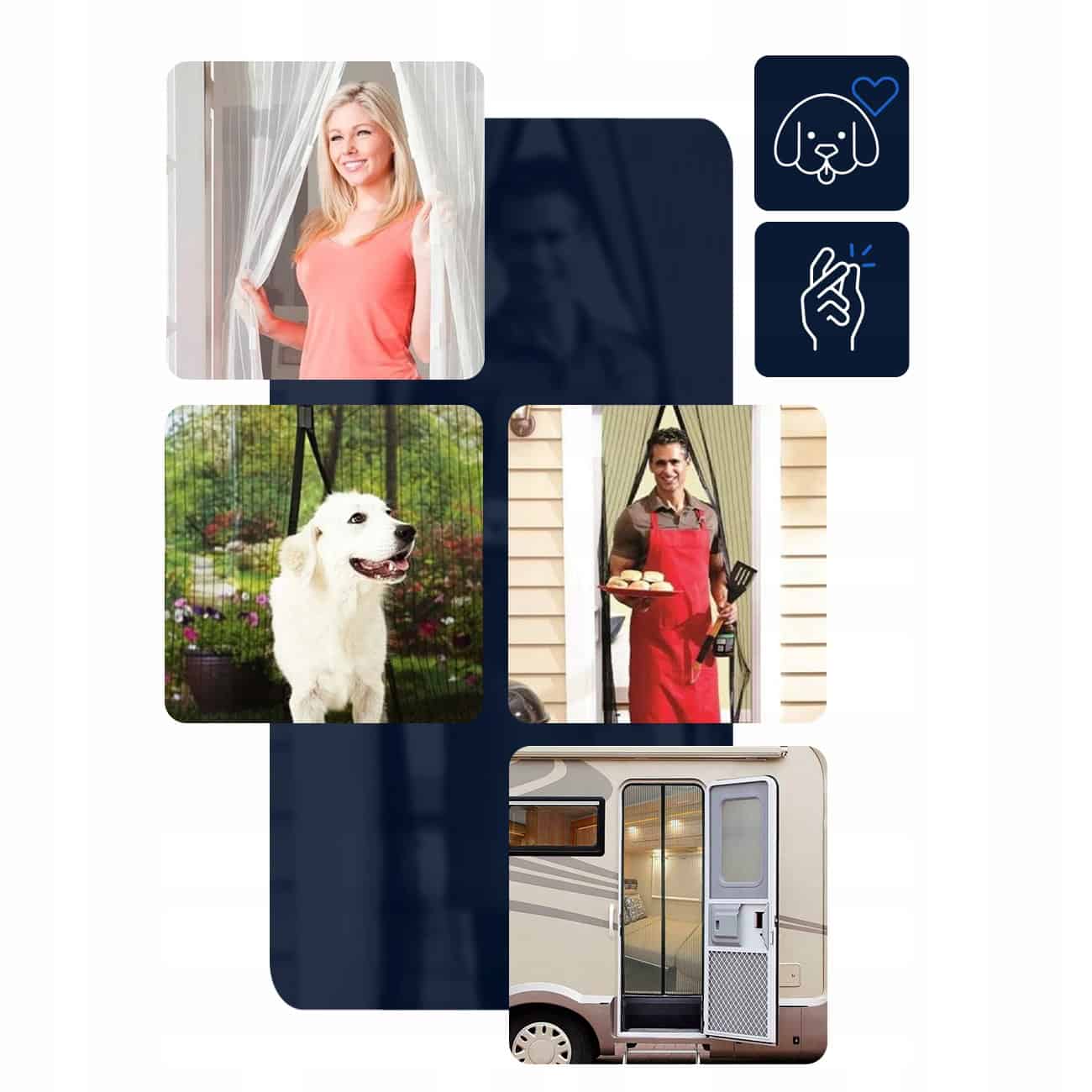Inaltime: de la 220 cm la 210 cm Latime: de la 100 cm la 80 cm Culoare: Alb Sunt incluse pana la 12 benzi Velcro lungi de 13 cm! Cuburi magnetice standard – 14 bucati + benzi magnetice suplimentare Plasa de tantari magnetica in 2 parti – Plasa de inalta calitate cu magneti pentru a va proteja casa de toate tipurile de insecte – tantari, muste, albine, molii. Plasa de tantari are 14 magneti puternici + benzi magnetice suplimentare intre toate perechile de magneti, o raritate printre plasele magnetice de tantari. Vine cu 12 benzi Velcro cu o lungime de un 13 cm – mult mai lunga decat la modelele de plase de tantari + ace suplimentare. Ideala si daca aveti acasa animale de companie sau copii mici. Plasa foarte densa, prin care nicio insecta nu poate trece! DIMENSIUNE UNIVERSALA: Plasa de tantari este universala – adica o putem adapta la diferitele dimensiuni ale usilor noastre datorita optiunii de taiere. De asemenea, este excelenta daca aveti o pisica sau un caine, deoarece permite animalelor de companie sa iasa liber afara. Instalarea plasei de tantari este extrem de usoara – nu este nevoie de cuie, suruburi sau unelte, ci doar de velcroul care este inclus.