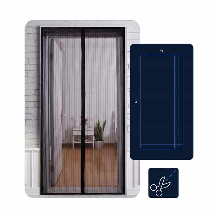 Inaltime: de la 220 cm la 210 cm Latime: de la 100 cm la 80 cm Culoare: Negru Sunt incluse pana la 12 benzi Velcro lungi de 13 cm! Cuburi magnetice standard – 14 bucati + benzi magnetice suplimentare Plasa de tantari magnetica in 2 parti – Plasa de inalta calitate cu magneti pentru a va proteja casa de toate tipurile de insecte – tantari, muste, albine, molii. Plasa de tantari are 14 magneti puternici + benzi magnetice suplimentare intre toate perechile de magneti, o raritate printre plasele magnetice de tantari. Vine cu 12 benzi Velcro cu o lungime de un 13 cm – mult mai lunga decat la modelele de plase de tantari + ace suplimentare. Ideala si daca aveti acasa animale de companie sau copii mici. Plasa foarte densa, prin care nicio insecta nu poate trece! DIMENSIUNE UNIVERSALA: Plasa de tantari este universala – adica o putem adapta la diferitele dimensiuni ale usilor noastre datorita optiunii de taiere. De asemenea, este excelenta daca aveti o pisica sau un caine, deoarece permite animalelor de companie sa iasa liber afara. Instalarea plasei de tantari este extrem de usoara – nu este nevoie de cuie, suruburi sau unelte, ci doar de velcroul care este inclus.