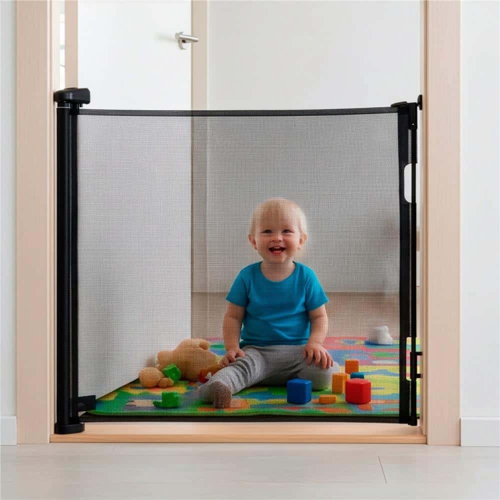 Specificatii tehnice: Material plasa: PVC Material tuburi: aluminiu Material elemente auxiliare: fier, POM, PC, ABS Culoare: negru Certificare: CE Latime maxima: aproximativ 162 cm Inaltime totala: 86 cm Inaltime plasa: 79 cm Latime plasa: 155 cm Grosime plasa: 0,1 cm Inaltime fata de podea: 0,5 cm Dimensiune poarta pliata: 85 x 9 x 9 cm Latime montaj: 7 – 80 cm Diametru bara de tensionare: 3 cm Lungime bara de tensionare: 80 cm Diametru tuburi laterale: 1,5 cm Lungime tuburi laterale: 80 cm Scurta descriere: Poarta de siguranta retractabila, conceputa pentru limitarea accesului copiilor sau animalelor de companie. Sistemul de rulare este silentios, iar structura compacta permite integrarea usoara in usi, holuri sau zone de trecere. Caracteristici principale: Design retractabil care economiseste spatiu Rulare silentioasa si functionare lina Sistem de blocare cu indicator vizual de siguranta Buton pentru retragerea automata a plasei Montaj flexibil, cu sau fara gaurire Suport inferior reglabil pentru ajustare precisa Indicator de siguranta cu doua culori Constructie stabila din materiale rezistente Potrivita pentru copii si animale de companie