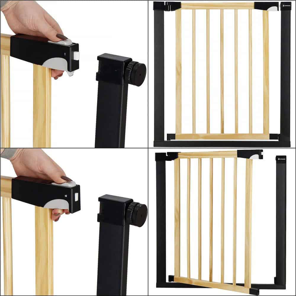 Poarta de siguranta Safety Gate pentru scari, ajustabila, din lemn cu structura otel, 82-89cm, negru maro Mob360 – produs disponibil în magazinul Mob360.